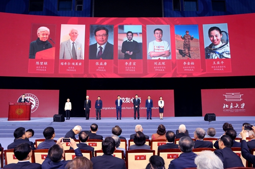 在隨后的“校友心語”環(huán)節(jié)中,1953級(jí)校友陳堃銶、1962級(jí)校友塔希爾·埃萊茲、1978級(jí)校友張益唐、1987級(jí)校友李彥宏、1995級(jí)校友劉正琛、2004級(jí)校友李金柏、2014級(jí)校友王亞平等回顧了自己在北大求學(xué)的經(jīng)歷,向母校表達(dá)了最深沉的熱愛和祝愿,他們祝福北大不斷創(chuàng)新、引領(lǐng)未來,培養(yǎng)出更多的領(lǐng)軍人物。“我愛北大,生日快樂!”是他們的共同心語。