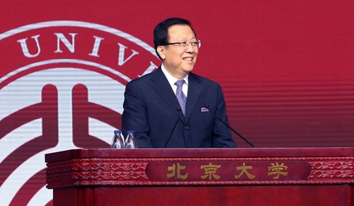 郝平宣讀了北大校友、國務(wù)院總理李克強(qiáng)同志給母校的賀信: