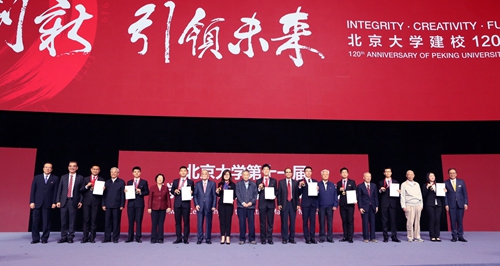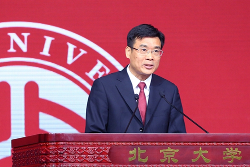 北京市委常委、市委教育工委書記林克慶表示,近年來,北京大學(xué)立足北京、服務(wù)北京、融入北京,積極參與“三城一區(qū)”建設(shè),參與北京“四個(gè)中心”功能建設(shè),參與京津冀協(xié)同發(fā)展戰(zhàn)略,為首都經(jīng)濟(jì)建設(shè)發(fā)展作出了重要貢獻(xiàn)。林克慶希望,北大站在120周年校慶的全新起點(diǎn)上,堅(jiān)持辦學(xué)正確政治方向,深入學(xué)習(xí)貫徹習(xí)近平總書記在北大考察時(shí)的重要講話精神,扎根中國大地辦大學(xué),把習(xí)近平新時(shí)代中國特色社會(huì)主義思想和黨的十九大精神全面融入到辦學(xué)思想中,建設(shè)高素質(zhì)教師隊(duì)伍,完善師德師風(fēng)的建設(shè)機(jī)制,推動(dòng)首都高等教育高質(zhì)量發(fā)展,擔(dān)負(fù)起引領(lǐng)中國高等教育發(fā)展的重大責(zé)任,形成高水平人才培養(yǎng)體系,培養(yǎng)挺立時(shí)代潮頭的奮斗者、開拓者、奉獻(xiàn)者,培養(yǎng)德智體美全面發(fā)展的社會(huì)主義建設(shè)者和接班人。他表示,北京市委將一如既往全力支持北京大學(xué)的發(fā)展。