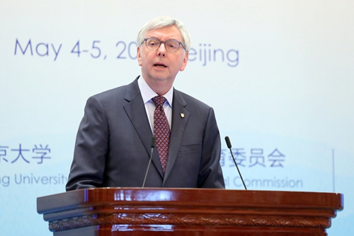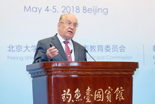 美國芝加哥大學(xué)校長羅伯特·季默(Robert Zimmer)發(fā)表題為“持久的價(jià)值觀與伙伴關(guān)系:大學(xué)的延續(xù)與變革”的主旨發(fā)言,討論世界領(lǐng)先大學(xué)的持久價(jià)值觀、這些價(jià)值如何隨著時(shí)間推移以新的方式得以實(shí)現(xiàn),以及芝加哥大學(xué)與北京大學(xué)的伙伴關(guān)系。