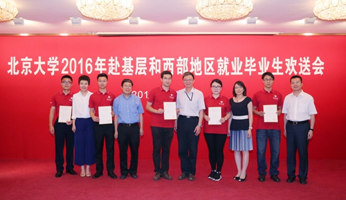為赴基層和西部地區(qū)就業(yè)的學(xué)生代表頒發(fā)榮譽證書