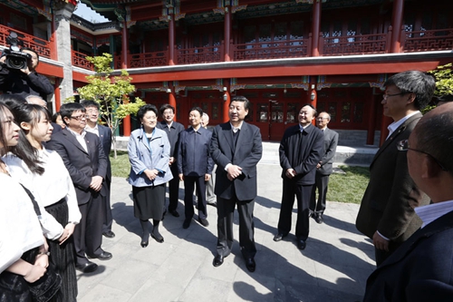 2014年5月4日,中共中央總書記、國家主席、中央軍委主席習(xí)近平在北京大學(xué)考察。這是習(xí)近平在人文學(xué)苑同師生們交流。新華社記者鞠鵬攝