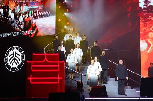 啟動儀式在穆旦詩歌《贊美》中拉開序幕,氣勢磅礴。隨后,交響音畫《北大,從歷史中走來》撫今追昔,回顧了北大自1898年建校以來的重要時(shí)刻,展現(xiàn)了北大人“愛國 進(jìn)步 民主 科學(xué)”的光榮傳統(tǒng)。