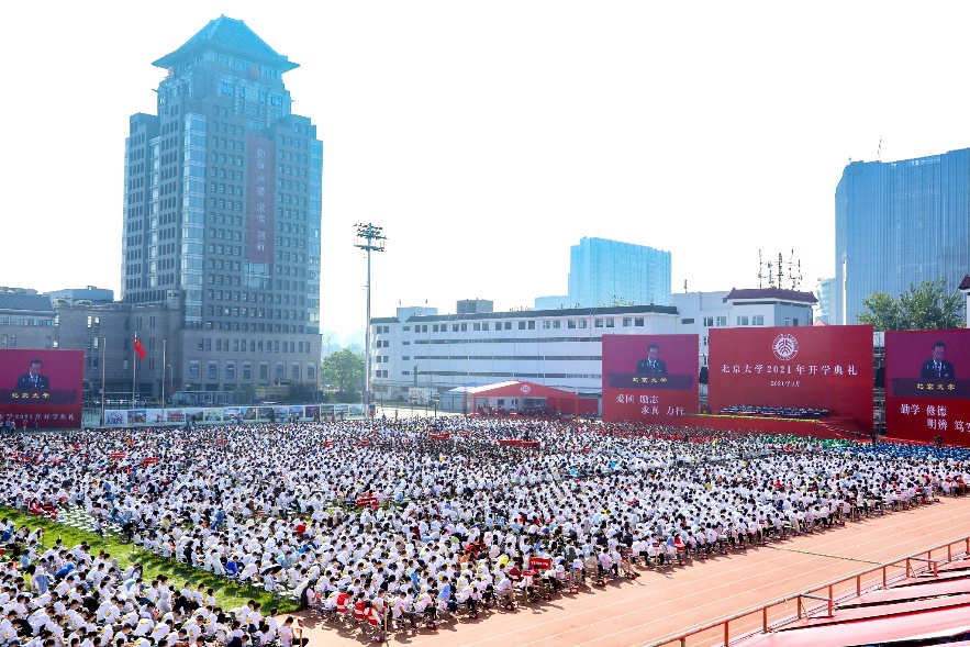 9月10日上午,北京大學(xué)2021年開(kāi)學(xué)典禮舉行。來(lái)自五湖四海的新生匯聚在五四體育場(chǎng),一張張青春的笑顏明媚了燕園的秋日。