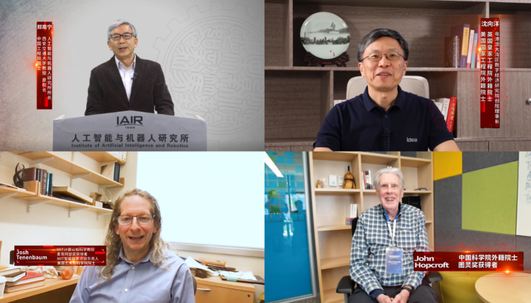 鄭南寧(左上)、沈向洋(右上)、Josh Tenenbaum(左下)、John Hopcroft(右下)視頻致辭