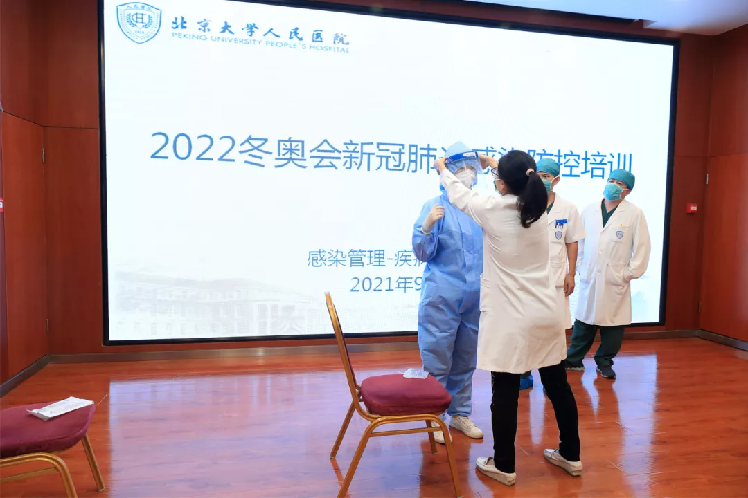為了讓每位保障隊(duì)員以最好的狀態(tài)投入到冬奧服務(wù)當(dāng)中,各團(tuán)體分批次組織參與了奧運(yùn)會(huì)保障的相關(guān)人員完成培訓(xùn)與考核:有針對(duì)通用知識(shí)、傳染病防治等理論知識(shí)的詳盡講解,有大型活動(dòng)醫(yī)療急救保障專項(xiàng)實(shí)操,也有冬奧英語及跨文化交流能力培訓(xùn)。在疫情防控常態(tài)化背景下,還有救治高風(fēng)險(xiǎn)閉環(huán)人員、穿脫防護(hù)用品等技能訓(xùn)練。其中,北醫(yī)三院遴選具有援鄂抗疫經(jīng)驗(yàn)的醫(yī)務(wù)人員和感控專家組成感控專家組,協(xié)同建立簡(jiǎn)明扼要的中英文電子病歷模板,既減少了醫(yī)務(wù)人員的暴露風(fēng)險(xiǎn)又提高了救治效率。專家組還組織編寫并印發(fā)了《冬奧會(huì)和冬殘奧會(huì)感染防控指導(dǎo)手冊(cè)》,方便大家隨時(shí)學(xué)習(xí)。