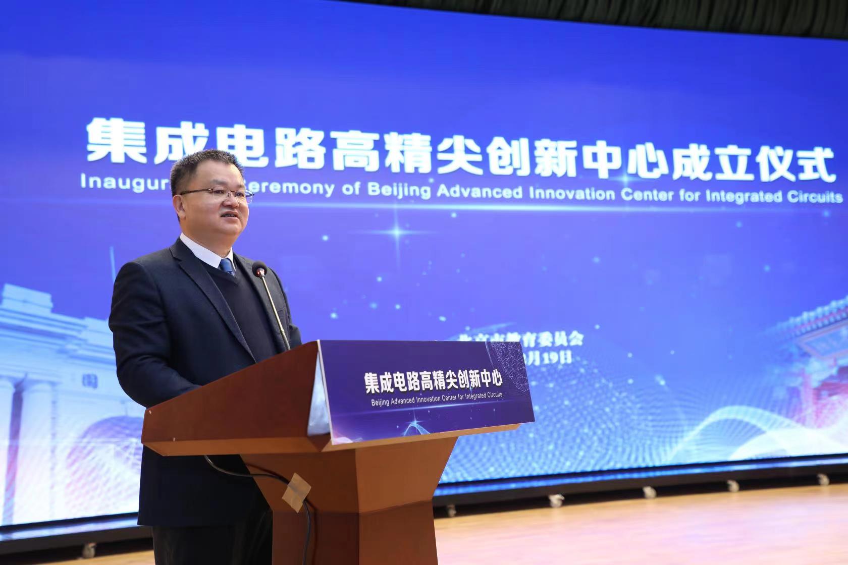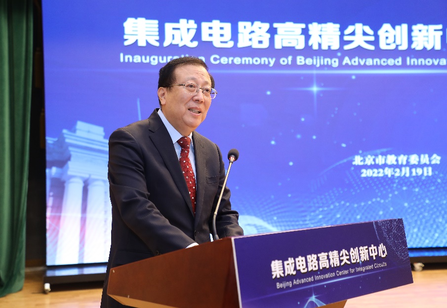 2月19日上午,集成電路高精尖創(chuàng)新中心在北京揭牌成立。北京市教委主任劉宇輝、副主任柳長安,北京市科委、中關(guān)村管委會二級巡視員劉航,北京經(jīng)濟(jì)開發(fā)區(qū)管委會一級巡視員陳小男等領(lǐng)導(dǎo),北京大學(xué)校長郝平,清華大學(xué)校長邱勇,北京大學(xué)教授、集成電路高精尖創(chuàng)新中心主任黃如院士,清華大學(xué)教授、集成電路高精尖創(chuàng)新中心主任尤政院士,北京大學(xué)副校長張平文院士,清華大學(xué)副校長曾嶸等共建高校專家代表,以及在京兄弟院校專家學(xué)者、企業(yè)代表、校友代表、學(xué)校相關(guān)職能部門負(fù)責(zé)人、學(xué)院師生代表200余人參加會議。揭牌儀式由張平文主持。