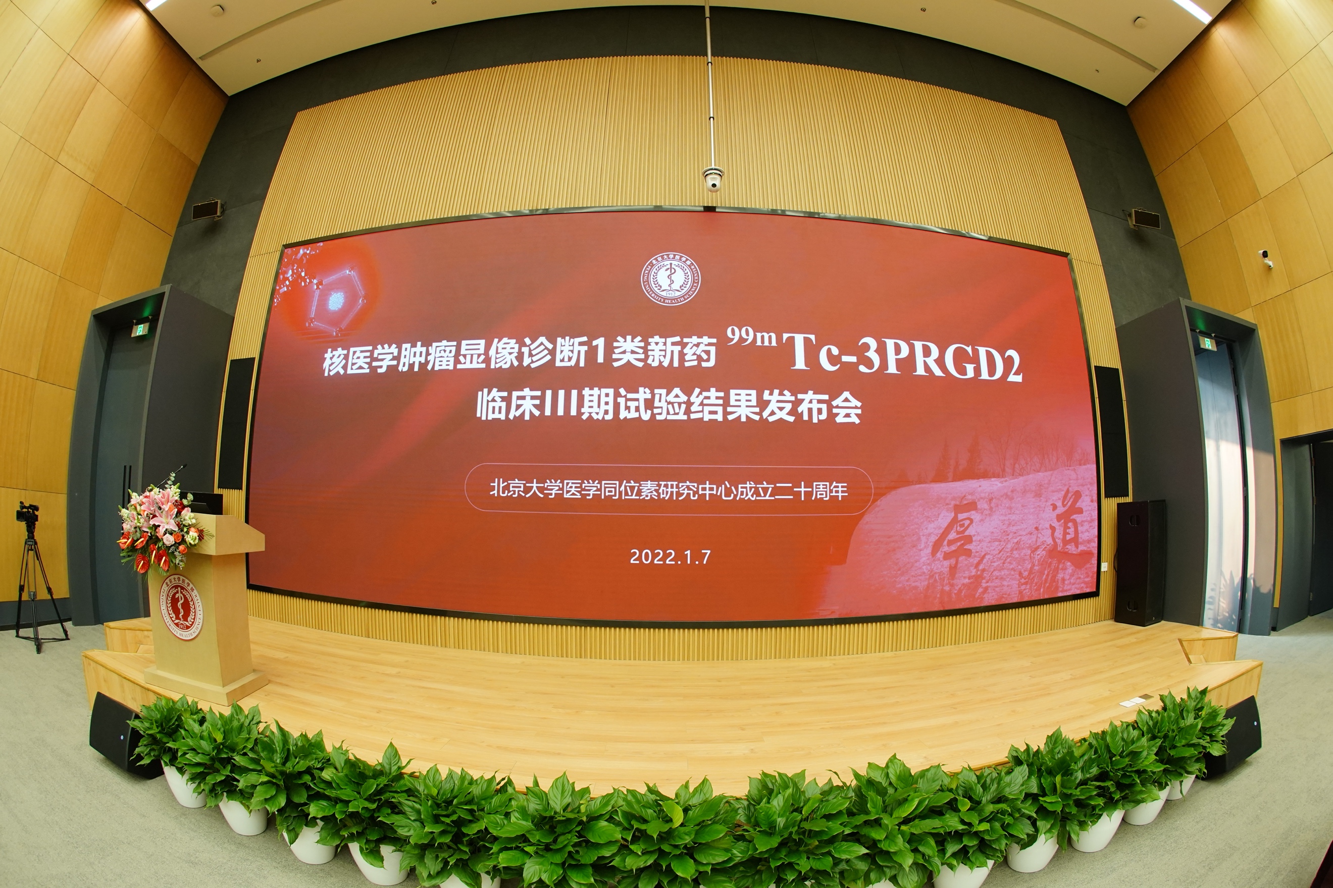 1月7日,中國(guó)首個(gè)核醫(yī)學(xué)腫瘤顯像診斷1類(lèi)新藥99mTc-3PRGD2,也是國(guó)際上第一個(gè)用于SPECT顯像診斷的廣譜腫瘤顯像劑,臨床III期試驗(yàn)結(jié)果發(fā)布會(huì)在北京大學(xué)醫(yī)學(xué)部舉行。99mTc-3PRGD2的臨床試驗(yàn)達(dá)到了主要終點(diǎn)和次要終點(diǎn)。國(guó)家藥監(jiān)局臨床試驗(yàn)批件指出“這是一個(gè)全新機(jī)制/靶點(diǎn)的藥物”。這一藥物的研制成功將改變核醫(yī)學(xué)SPECT/CT影像技術(shù)不能用于腫瘤診斷、分期和療效評(píng)價(jià)的技術(shù)現(xiàn)狀和常規(guī)認(rèn)知。20年磨一劍,這個(gè)1類(lèi)新藥的誕生,見(jiàn)證著北醫(yī)人扎根祖國(guó)大地,服務(wù)中國(guó)百姓的情懷,也見(jiàn)證著北京大學(xué)醫(yī)學(xué)同位素研究中心20年的發(fā)展,凝聚著北京大學(xué)醫(yī)學(xué)同位素研究中心主任王凡教授及其團(tuán)隊(duì)的傳承與夢(mèng)想,更贏得了國(guó)內(nèi)外的關(guān)注和期待。
