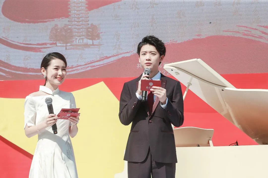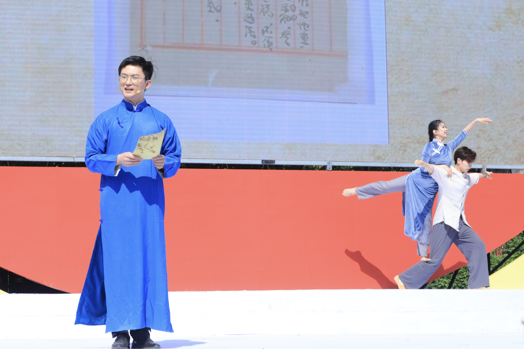 與學(xué)生代表一同登臺朗誦革命組詩