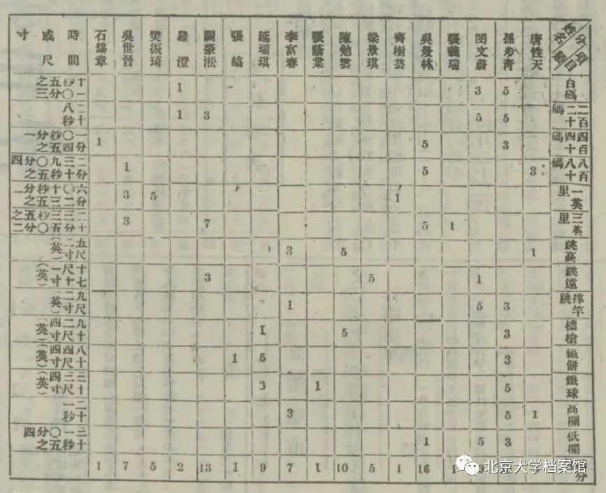 1922年,為促進(jìn)全體學(xué)生體育發(fā)展,學(xué)校成立了體育委員會,胡適、顧孟余、蔣百里等七人為委員。同年又設(shè)立了體育部,負(fù)責(zé)體育指導(dǎo)和體育設(shè)備之制備等任務(wù)。在學(xué)校十分重視體育活動的背景下,中華民國成立后的第一屆全校師生春季運動會隆重舉行。