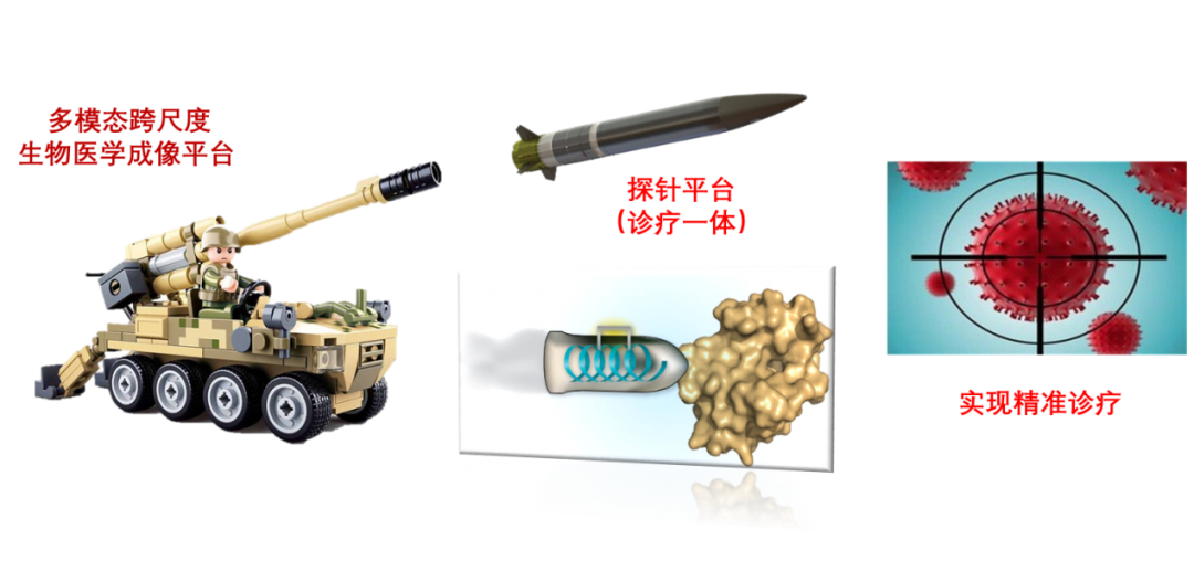 分子核醫(yī)學(xué)時(shí)代,分子影像探針是大多數(shù)生物醫(yī)學(xué)影像儀器設(shè)備發(fā)揮功能的載體,是實(shí)現(xiàn)分子成像的先決條件和核心技術(shù)。分子影像探針通常都需要利用靶向分子將示蹤分子(如放射性核素,熒光染料,微泡等)輸送到靶標(biāo),從而使靶標(biāo)位置(如病灶)迅速積累信號(hào),來達(dá)到分子特異性成像的目的。