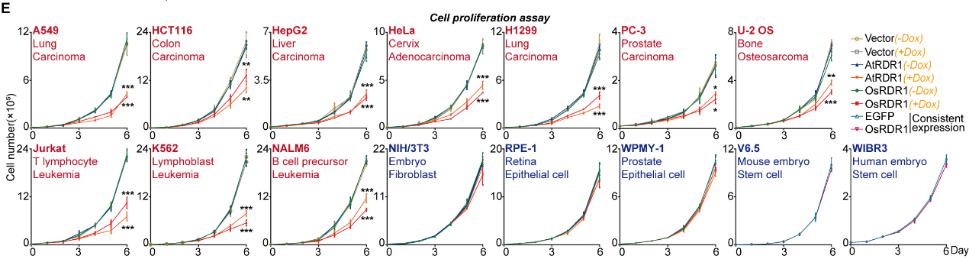 AtRDR1和OsRDR1廣譜且特異的抑制癌細(xì)胞增殖,但不影響非癌細(xì)胞系