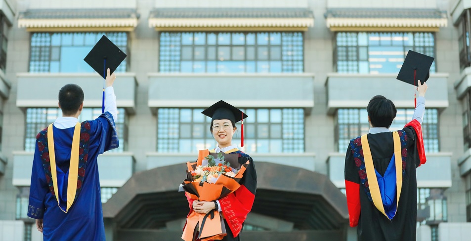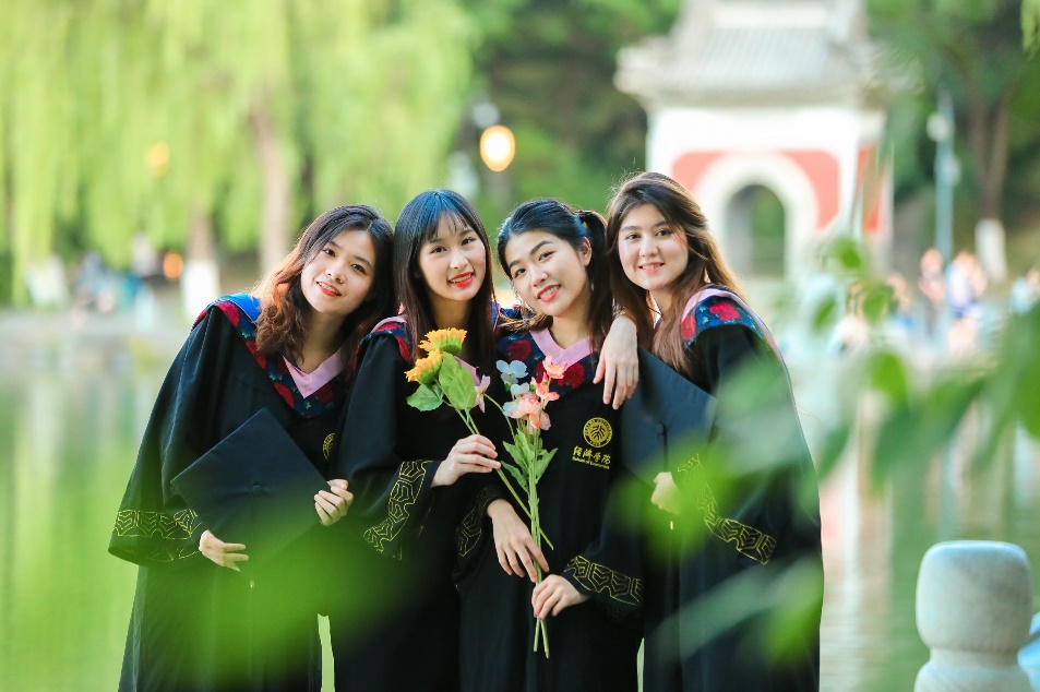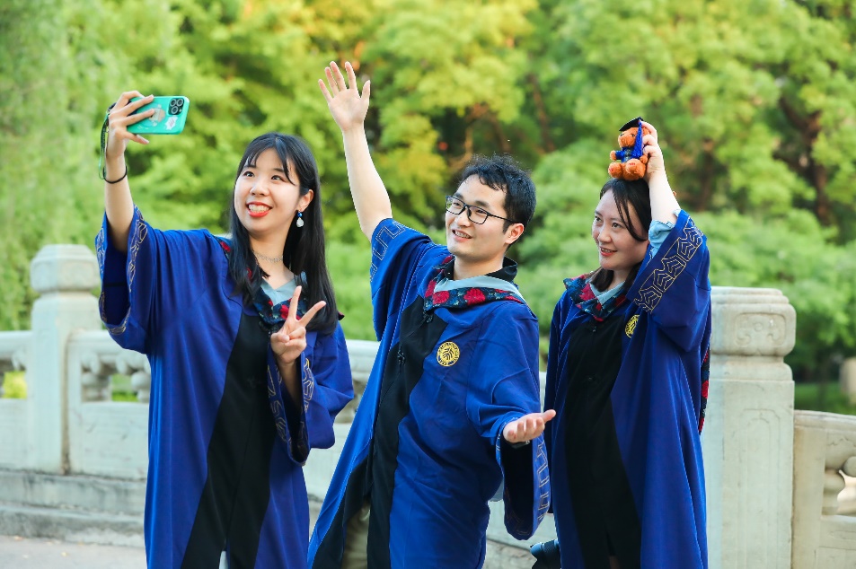 在這湖光塔影中漫步的,便是身著各色學(xué)位服的畢業(yè)生們了。