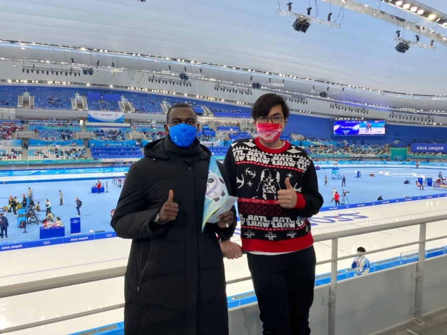 陳志軒與朋友在2022年北京冬奧速度滑冰比賽現(xiàn)場(chǎng)