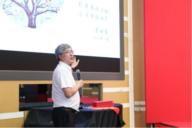 高原寧介紹了北京大學(xué)物理學(xué)科概況及“物理卓越計(jì)劃”的選拔過程和培養(yǎng)思路。“物理卓越計(jì)劃”面向國內(nèi)外選拔物理學(xué)科拔尖、綜合素質(zhì)優(yōu)異,有志于沖擊世界科技前沿、服務(wù)國家發(fā)展戰(zhàn)略的中學(xué)生,尊重每一位學(xué)生的個(gè)性化發(fā)展,采用多模塊榮譽(yù)課程、科研與實(shí)踐、國際課堂相結(jié)合的培養(yǎng)體系,因材施教,致力于為國家和民族培養(yǎng)家國情懷與國際視野、創(chuàng)新精神與實(shí)踐能力兼具的領(lǐng)軍人才,以及未來引領(lǐng)中國高水平科技自立自強(qiáng)乃至世界物理學(xué)和相關(guān)領(lǐng)域發(fā)展的學(xué)術(shù)大師。高原寧還在現(xiàn)場展示了諾貝爾物理學(xué)獎(jiǎng)獲得者、北京現(xiàn)代物理研究中心主任李政道先生為“物理卓越計(jì)劃”題寫的“創(chuàng)新成就卓越,人才成就未來”。