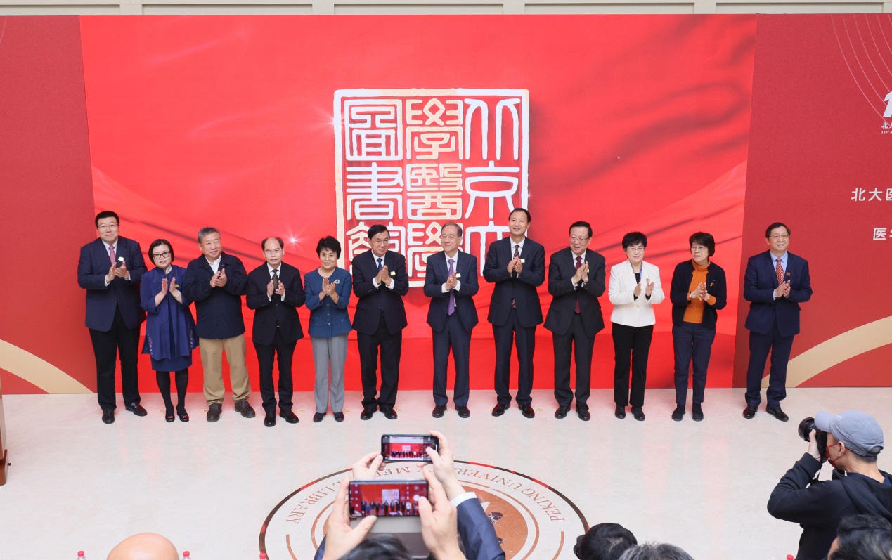 從第一枚醫(yī)學(xué)實業(yè)館圖記到如今使用的北京大學(xué)醫(yī)學(xué)圖書館印章,圖章之間,穿越百年,承載著知識的重量,也承載著對未來的憧憬。韓啟德、張玉卓、孫堯、郝平、林蕙青、熊遠(yuǎn)明、柯楊、喬杰、陳寶劍、胡毅等手觸屏幕,現(xiàn)場來賓及師生代表一起見證醫(yī)學(xué)圖書館重啟,共同開啟淑范醫(yī)學(xué)圖書館新征程!