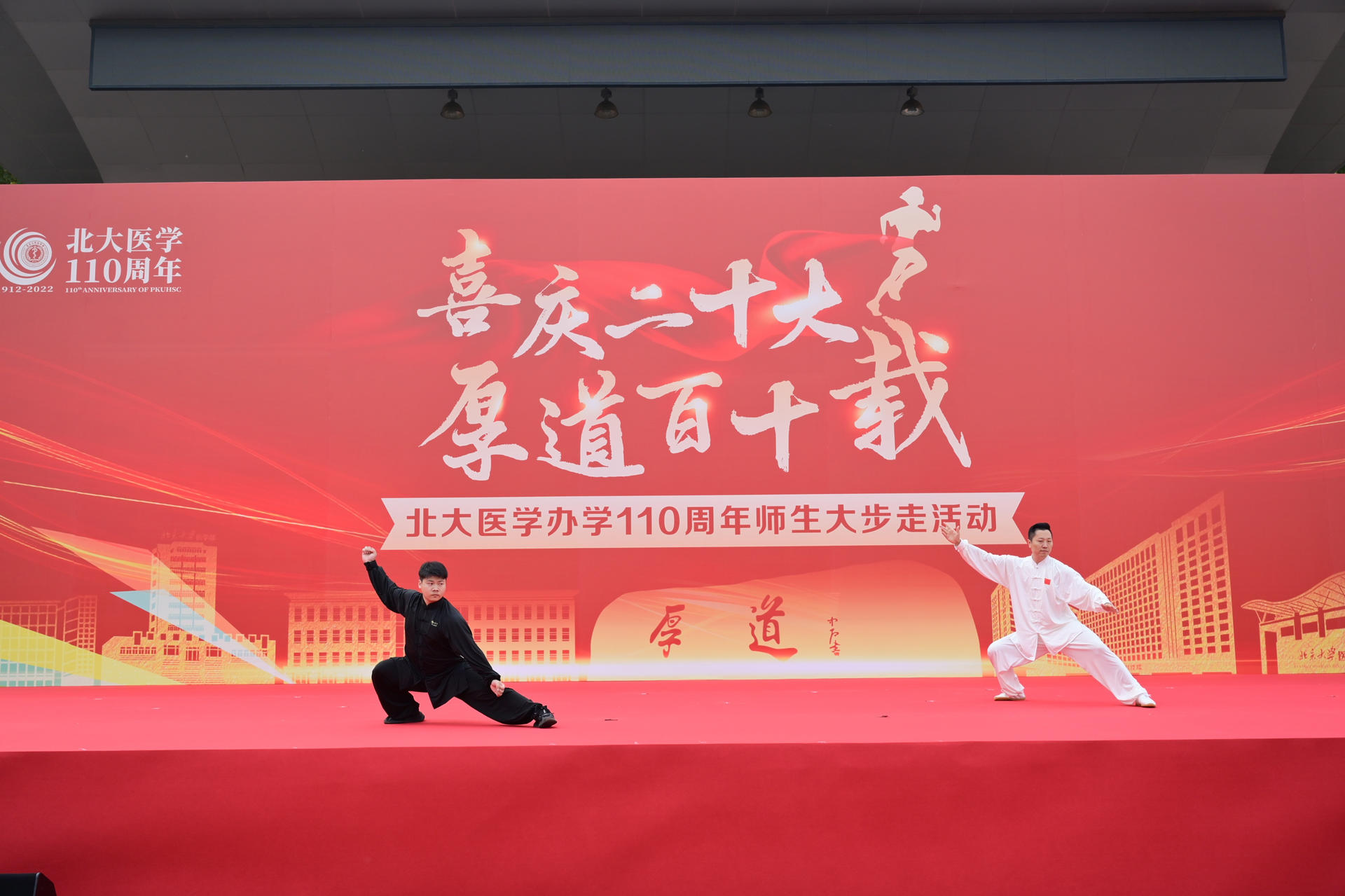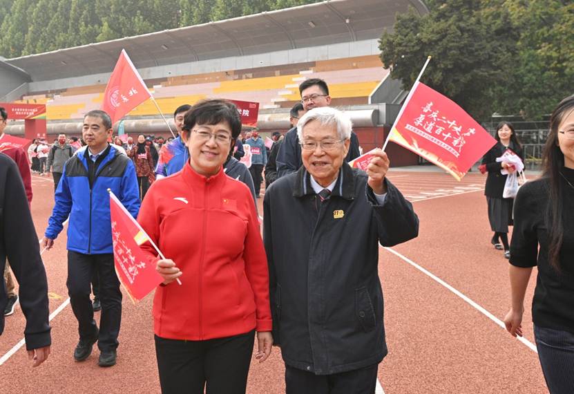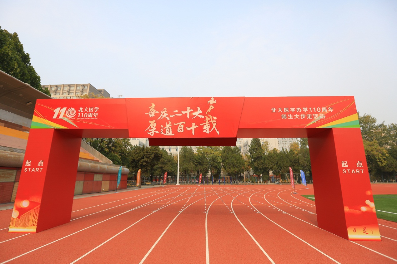 在10月26日下午舉辦的“喜慶二十大,厚道百十載”——北大醫(yī)學(xué)辦學(xué)110周年師生大步走活動中,北京大學(xué)校長龔旗煌,喬杰,陳寶劍,醫(yī)學(xué)部黨委常務(wù)副書記徐善東,北京大學(xué)黨委辦公室校長辦公室主任王新強,醫(yī)學(xué)部副主任段麗萍、肖淵、王嘉東、孫智利,醫(yī)學(xué)部黨委副書記、工會主席朱樹梅,醫(yī)學(xué)部主任助理范春梅出席活動。活動還特別邀請了中國工程院院士、基礎(chǔ)醫(yī)學(xué)院教授莊輝,藥學(xué)院教授焦寧,公共衛(wèi)生學(xué)院研究員劉玨,第一臨床醫(yī)學(xué)院臨床醫(yī)學(xué)八年制學(xué)生周慶慶等師生代表與領(lǐng)導(dǎo)共同為大步走活動鳴槍發(fā)令。九大方陣、1100余名師生以步為引賡續(xù)紅色血脈,向北大醫(yī)學(xué)獻(xiàn)上最誠摯的生日祝福,展現(xiàn)了踔厲奮發(fā)、勇毅前行的姿態(tài),彰顯了自信自強、守正創(chuàng)新的精神,以更加昂揚的斗志奮進(jìn)新征程、建功新時代。