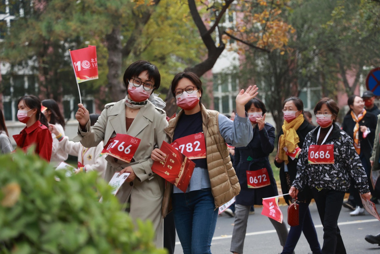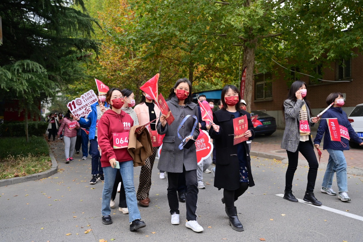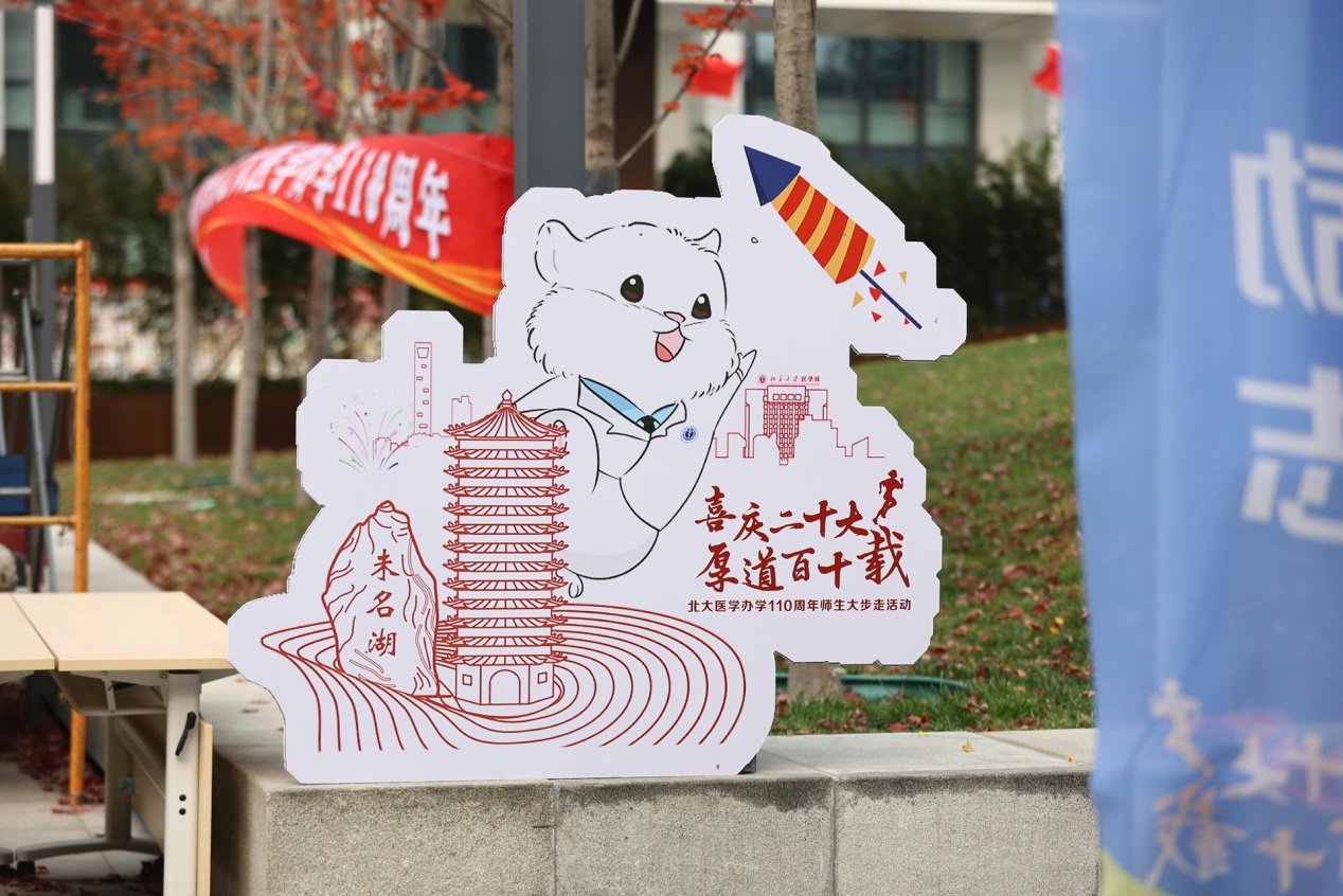 無論是沿途獨具匠心的道旗,還是活潑可愛的吉祥物置景,都引起了北大醫(yī)學(xué)人的集體共鳴。莊輝已在北醫(yī)工作59年,親眼見證北醫(yī)日新月異的發(fā)展,他深感自豪,并相信在新一代北大醫(yī)學(xué)人的共同努力下,將會為健康中國建設(shè)作出更大的貢獻(xiàn)。劉玨認(rèn)為:“我們走的每一步,不僅僅是物理意義上的距離,也是我們在新時代新征程中為學(xué)校未來發(fā)展作出的每一步努力。”周慶慶激動地說:“作為新時代的青年學(xué)生,作為一名未來的醫(yī)者,我們將以仁心仁術(shù)為推進(jìn)醫(yī)學(xué)事業(yè)發(fā)展添一分熱,發(fā)一分光!”焦寧表示,要努力當(dāng)好青年成長的陪跑員,“帶領(lǐng)他們不斷探索新知,在有著百十年積淀的沃土上再譜新篇”。今天也是藥物依賴性研究所鮑彥平老師的生日,她回憶起每次大步走活動:“這不僅僅是一個強身健體的活動,也是凝聚我們熱愛、感悟辦學(xué)宗旨與北醫(yī)精神的時刻。”