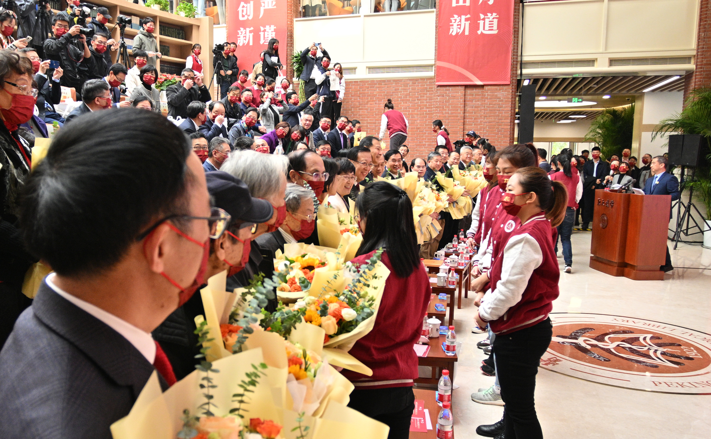百年圖書館重啟,是學(xué)校黨委及各級領(lǐng)導(dǎo)的高度重視和大力支持,是廣大師生的理解配合、是機關(guān)后勤干部的24小時值守、是施工有關(guān)單位的艱苦努力,還有熱心校友和各界朋友的鼎力支持。學(xué)生代表在現(xiàn)場向各位老師獻(xiàn)花表達(dá)感恩致謝。