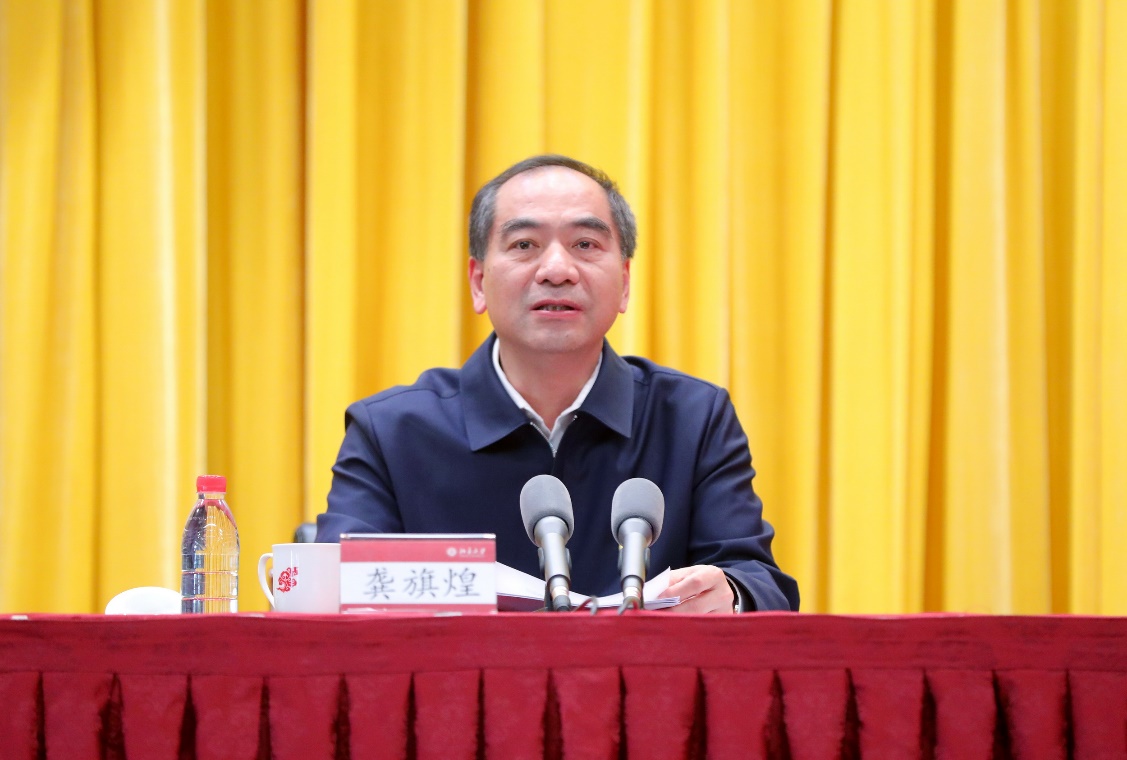 龔旗煌結(jié)合參會(huì)過程和心得體會(huì),從黨的二十大的基本情況和重大意義、黨的二十大報(bào)告的起草情況和主要內(nèi)容、深入學(xué)習(xí)貫徹黨的二十大關(guān)于科教興國的重要部署等方面全面系統(tǒng)地傳達(dá)了黨的二十大精神,并就“以黨的二十大精神為指引,加快建設(shè)中國特色世界一流大學(xué)”進(jìn)行具體部署。