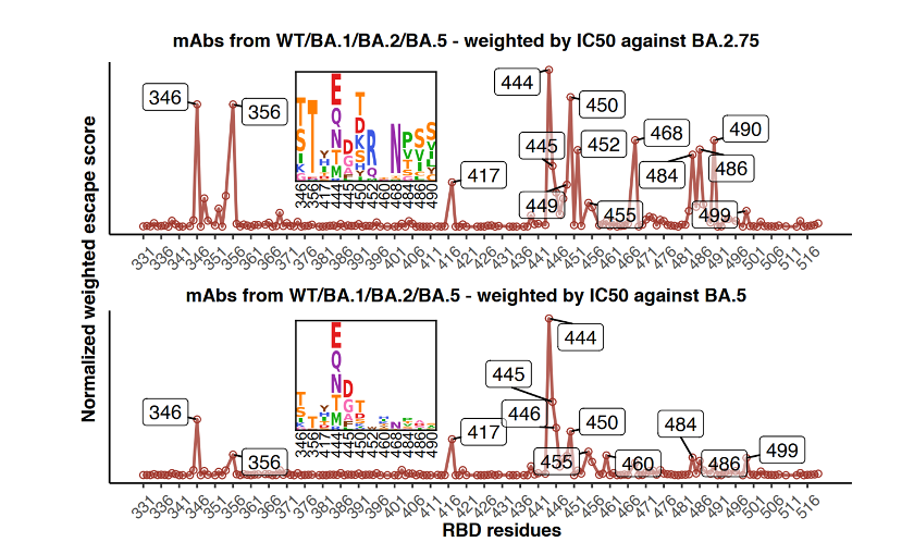 現(xiàn)有證據(jù)表明,新冠病毒奧密克戎支系目前的演化是由中和抗體導(dǎo)致的免疫逃逸壓力主導(dǎo)的。曹云龍表示,“利用大量不同變異株感染者抗體逃逸圖譜,我們可以分析出在不同的免疫背景下,分別是哪些RBD突變有利于病毒逃逸最多的強(qiáng)效中和抗體,并較準(zhǔn)確地預(yù)測出不同毒株的突變趨勢”