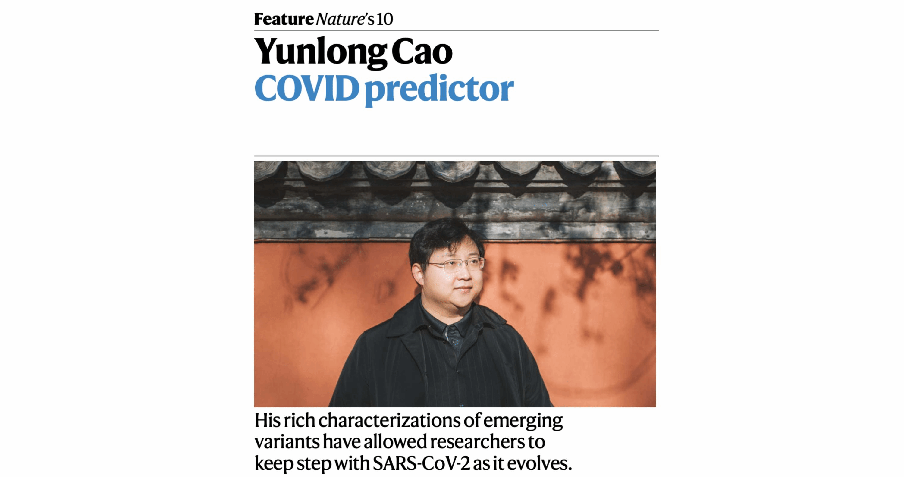 Nature這樣介紹:“曹云龍:新冠預(yù)測者(COVID-predictor),幫助追蹤新冠病毒的演化,并預(yù)測了導(dǎo)致新變異株產(chǎn)生的重要突變。”