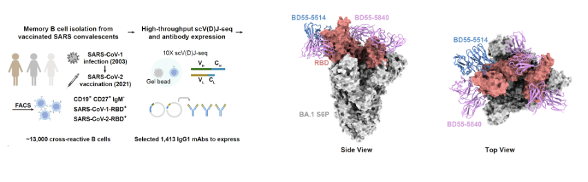 圖6.從非典康復(fù)者記憶B細(xì)胞中高通量篩選新冠廣譜新冠中和抗體SA58/SA55