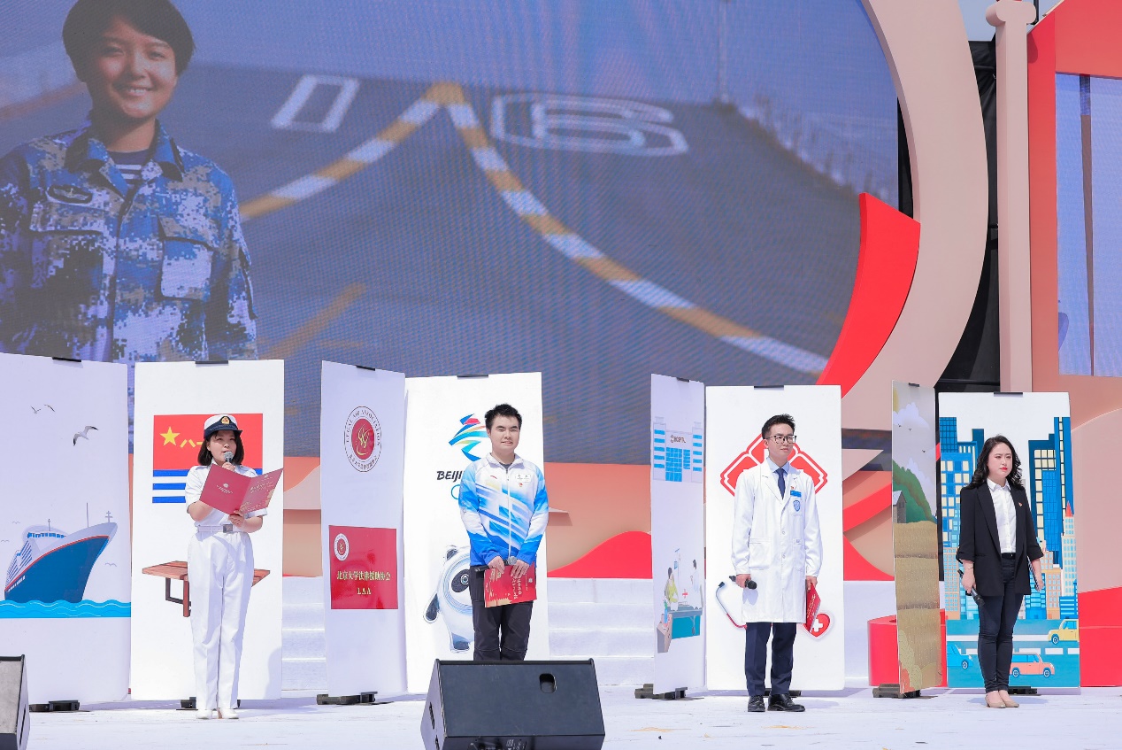 第三篇章“筑夢未名,青年接力”以詩朗誦《延安與中國青年》《祖國啊,我親愛的祖國》開篇。退役大學生士兵楊潔瑜與北京大學學生代表帶領觀眾跨越時間長河,攜延安的火種照亮當代青年之前路,展現(xiàn)青春昂揚的理想與熱忱,鼓勵北大青年繼往開來、接續(xù)奮進。