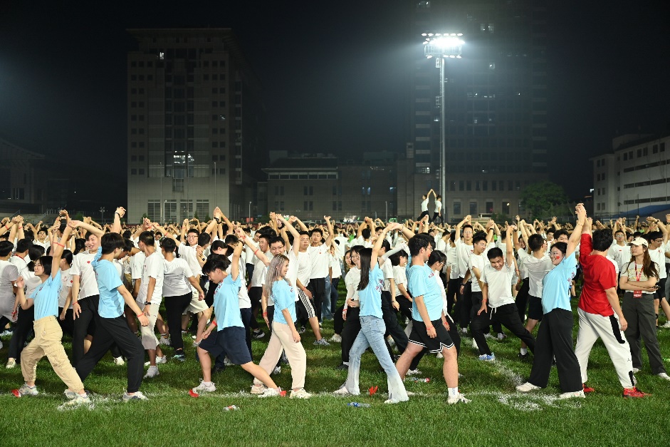 活動(dòng)最后,現(xiàn)場(chǎng)師生于體育場(chǎng)中央集合,圍繞著五星紅旗與“2023”圖案合唱《燕園情》。歌聲隨風(fēng)飛揚(yáng),燈光匯聚成海,在“強(qiáng)國(guó)有我,青春有為”的口號(hào)聲中,北京大學(xué)2023年“開(kāi)學(xué)第一跑”活動(dòng)圓滿(mǎn)結(jié)束。