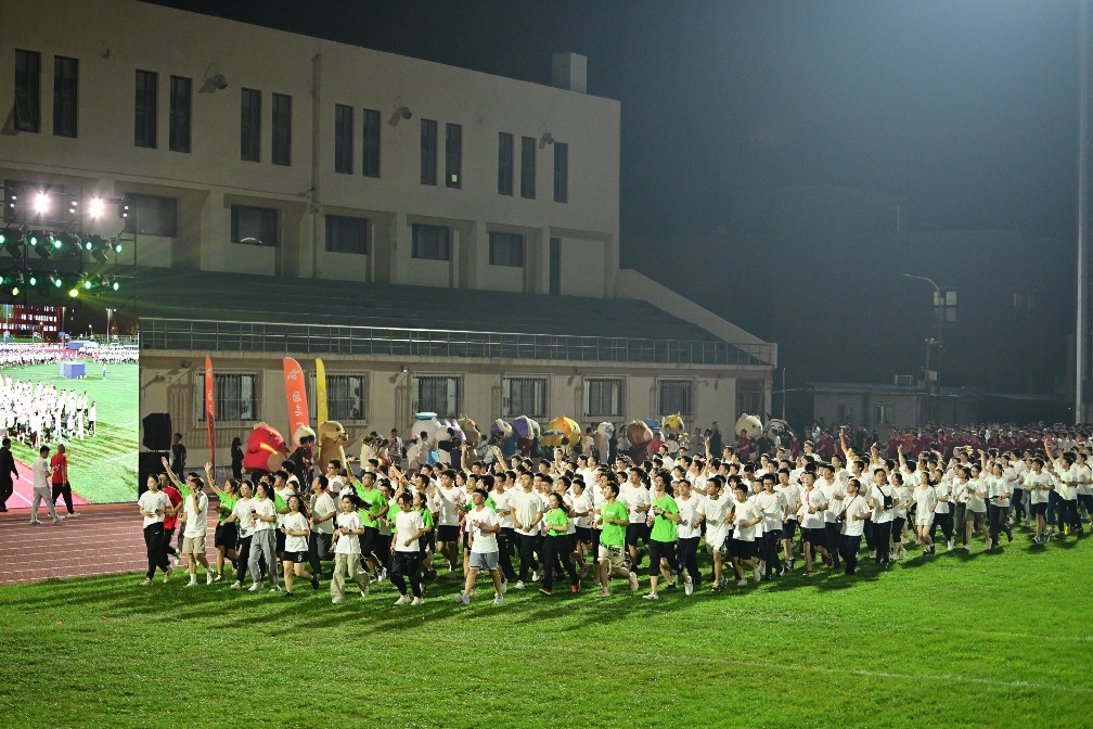 從快走到慢跑,方陣跑動(dòng)的速度逐漸加快,現(xiàn)場(chǎng)氣氛熱烈而有序。在主席臺(tái)下的跑道外側(cè),各院系的吉祥物為經(jīng)過(guò)的師生加油鼓勁、吶喊助威。同學(xué)們精神飽滿(mǎn)、熱情高漲,揮灑著青春的汗水,展現(xiàn)出昂揚(yáng)的風(fēng)采。