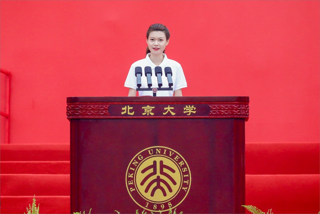 在嘉賓、老師們的共同見證下,新生們集體將校徽佩戴在胸前,與這“永遠(yuǎn)的校園”血脈相連。胸前“北京大學(xué)”四個(gè)字格外醒目,這將成為鐫刻在這些新北大人心中一生的印記。