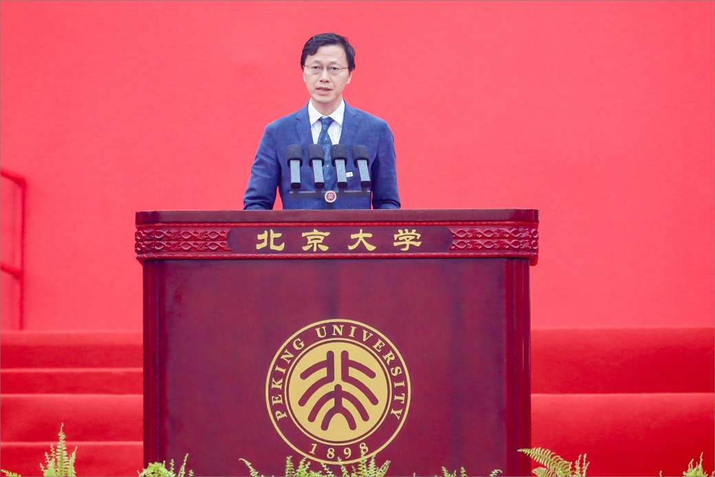 龔旗煌代表全校師生員工祝賀各位新同學(xué)圓夢北大并開啟人生新征程。他表示,大家懷抱夢想來北大求學(xué),而“夢想從學(xué)習(xí)開始”,希望同學(xué)們弘揚(yáng)“勤奮、嚴(yán)謹(jǐn)、求實(shí)、創(chuàng)新”的學(xué)風(fēng),勤于學(xué)習(xí)、敏于求知,打牢成才立業(yè)、成就夢想的根基,用好在北大這段求知問學(xué)的黃金時(shí)期。