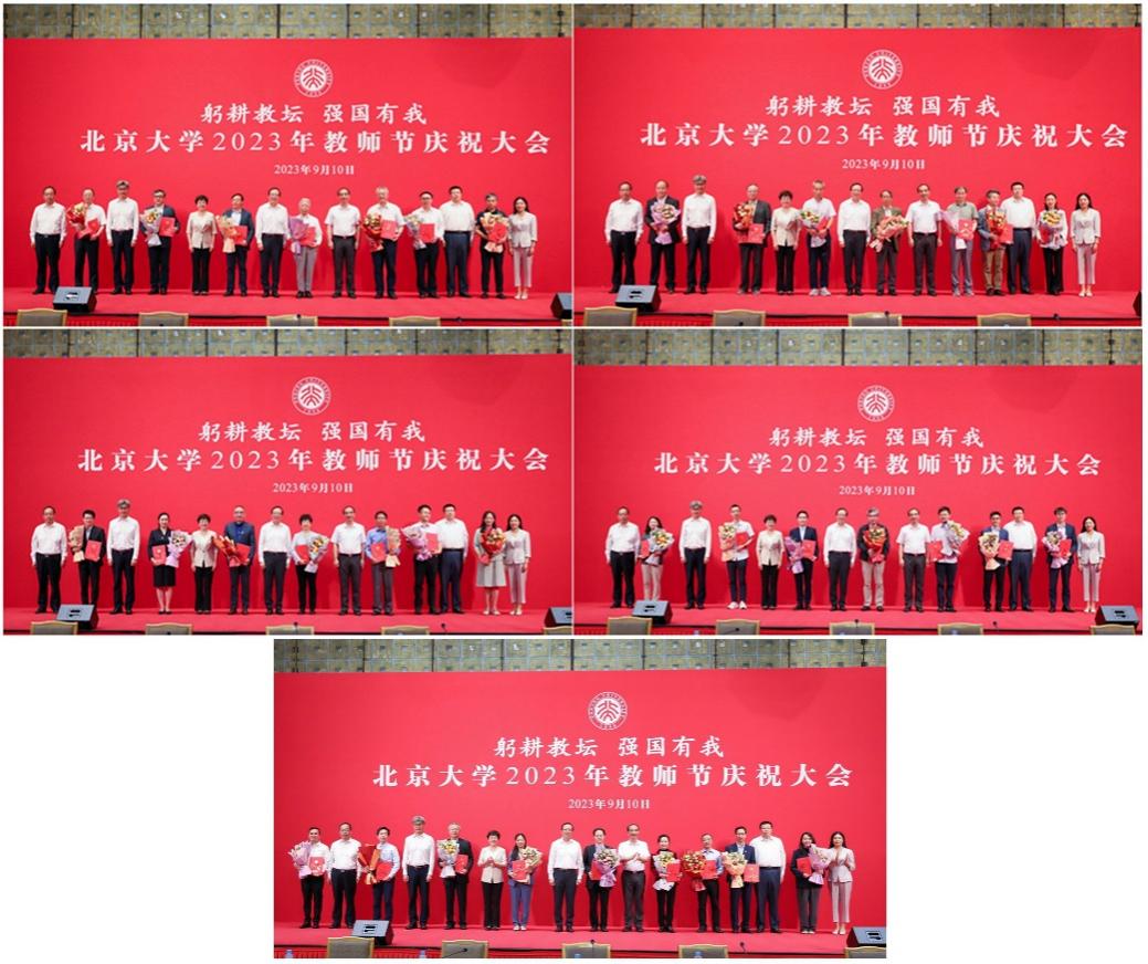 9月10日下午,在第39個(gè)教師節(jié)來(lái)臨之際,北京大學(xué)在英杰交流中心召開教師節(jié)慶祝大會(huì),認(rèn)真學(xué)習(xí)領(lǐng)會(huì)習(xí)近平總書記關(guān)于教師的重要論述和指示批示精神,深刻領(lǐng)悟教育家精神的豐富內(nèi)涵和實(shí)踐要求,并表彰在教書育人各方面工作中取得突出成績(jī)的先進(jìn)集體和優(yōu)秀個(gè)人。黨委書記郝平、校長(zhǎng)龔旗煌等學(xué)校領(lǐng)導(dǎo)班子成員出席大會(huì)。學(xué)校2022—2023學(xué)年獲得各類獎(jiǎng)項(xiàng)的教師代表,各院系、各職能部門和直屬附屬單位負(fù)責(zé)同志,工會(huì)、教代會(huì)代表和學(xué)生代表300余人參加大會(huì)。大會(huì)由校黨委常務(wù)副書記、組織部部長(zhǎng)、醫(yī)學(xué)部黨委書記陳寶劍主持。