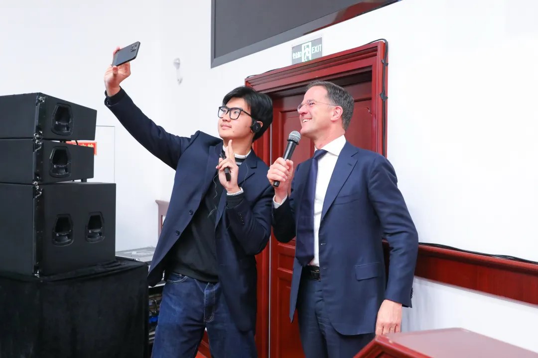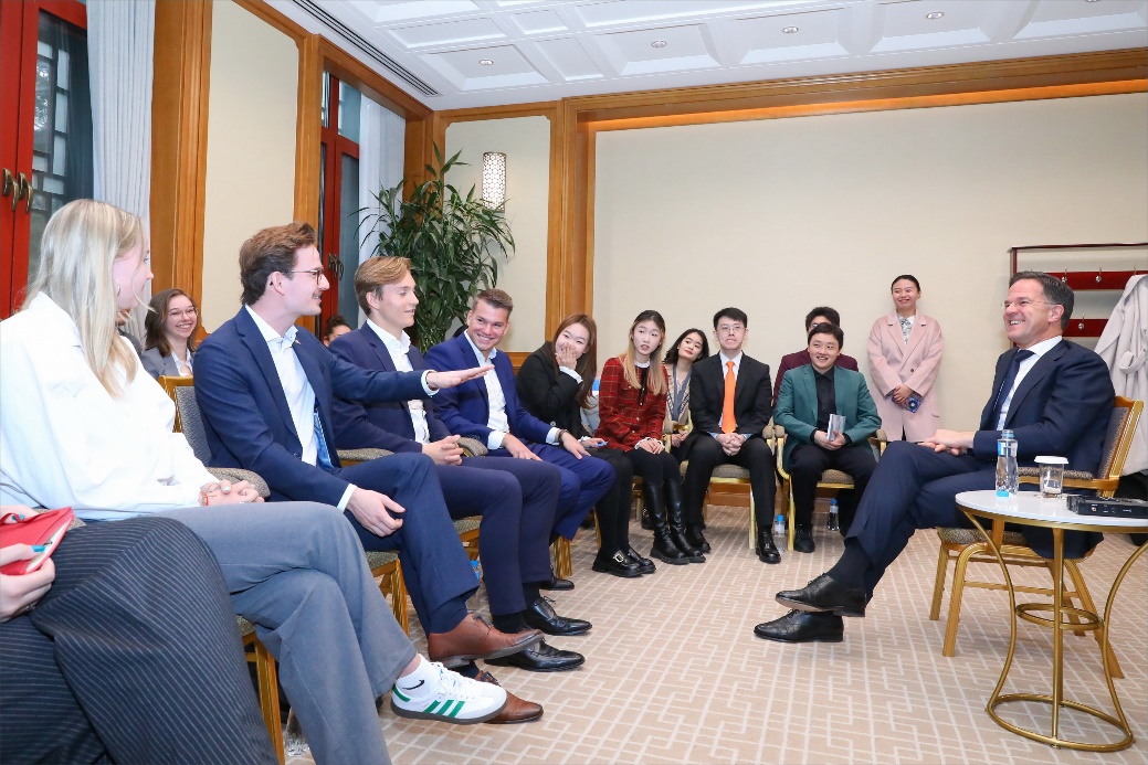 交流會后,呂特首相與在京荷蘭籍留學生及荷蘭語專業(yè)學生進行座談。呂特首相耐心聽取了學生代表的見解和問題,鼓勵同學們繼續(xù)深化對荷蘭和中國文化的了解,同時也強調(diào)了跨文化交流和國際合作的重要性,勉勵同學們努力成為促進荷中友好關系發(fā)展的橋梁和使者。