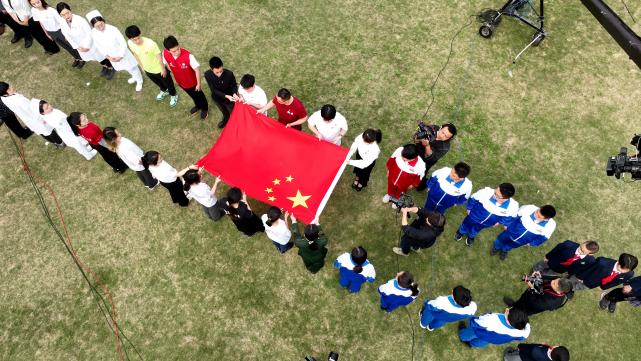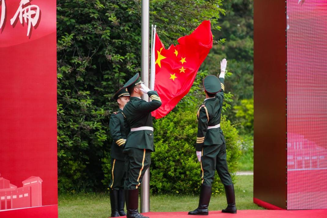上午8時整,旭日東升,晨光絢麗,升旗儀式正式開始。在北京大學(xué)主會場,54名師生代表手手傳遞五星紅旗,他們中既有為學(xué)校辛勤耕耘一生的離退休教師,又有來自北大附中附小的祖國未來之星;既有院系的黨委書記、院長代表,又有育人一線的思政輔導(dǎo)員和厚道仁心的北大第三醫(yī)院的醫(yī)生護士;既有勇攀科技高峰的老中青科學(xué)家,又有在科研、志愿服務(wù)等各領(lǐng)域閃閃發(fā)光的北大優(yōu)秀學(xué)生代表。五四精神的炬火、矢志報國的血脈,在一代又一代北大人的堅守耕耘中傳承與弘揚。當(dāng)國旗護衛(wèi)隊的六位標(biāo)兵接過五星紅旗并護旗至旗桿后,雄壯莊嚴(yán)的國歌奏響,北大校園、浙江嘉興、遼寧撫順、河北樂亭、云南彌渡、內(nèi)蒙古杭錦后旗、新疆烏魯木齊、青海大通、西藏拉薩、河北雄安的十地師生全體起立同唱國歌,共同注視著鮮艷的五星紅旗向著朝陽升起,感受著激蕩人心的愛國之情,凝聚起團結(jié)奮斗的磅礴力量。