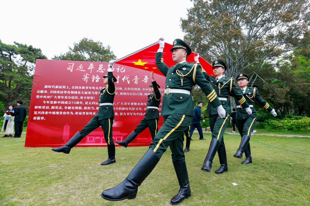 為深入學(xué)習(xí)貫徹習(xí)近平總書記五四青年節(jié)對全國廣大青年重要寄語精神,激勵青年學(xué)思踐悟習(xí)近平新時代中國特色社會主義思想,傳承五四精神,爭做“有理想、敢擔(dān)當(dāng)、能吃苦、肯奮斗”的新時代好青年,5月4日,“五四薪火耀紅旗,青年奮楫譜新篇”北京大學(xué)慶祝建校126周年暨2024年五四主題升旗儀式在靜園草坪舉行。參加儀式的有共青團中央書記處第一書記阿東、書記處書記胡百精等團中央領(lǐng)導(dǎo),北京大學(xué)黨委書記郝平、校長龔旗煌等校領(lǐng)導(dǎo)班子成員,全校40余個院系的黨政領(lǐng)導(dǎo)和相關(guān)職能部門負(fù)責(zé)人,學(xué)生工作系統(tǒng)干部及學(xué)生代表等。浙江嘉興南湖革命紀(jì)念館、遼寧撫順雷鋒旅、河北樂亭李大釗紀(jì)念館、云南彌渡第一完全中學(xué)、內(nèi)蒙古奮斗中學(xué)、新疆廟爾溝中學(xué)、青海朔山中學(xué)、西藏拉薩中學(xué)、河北安新中學(xué)的干部和師生代表與北大校園主會場云端連線,十地同升國旗。升旗儀式由北京大學(xué)黨委組織部常務(wù)副部長吳艷紅主持。