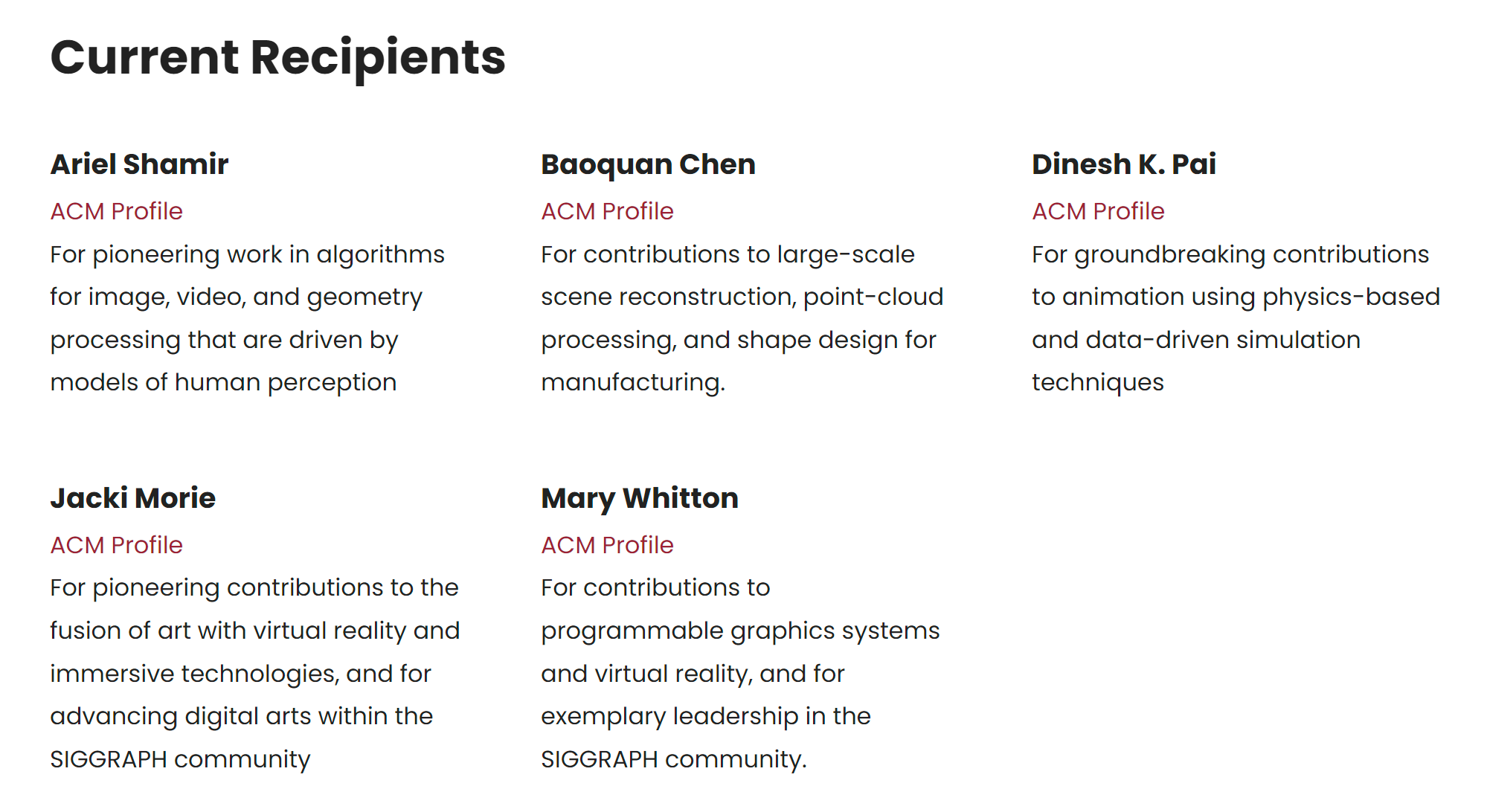 ACM SIGGRAPH官網(wǎng)公布最新獲選成員名單
