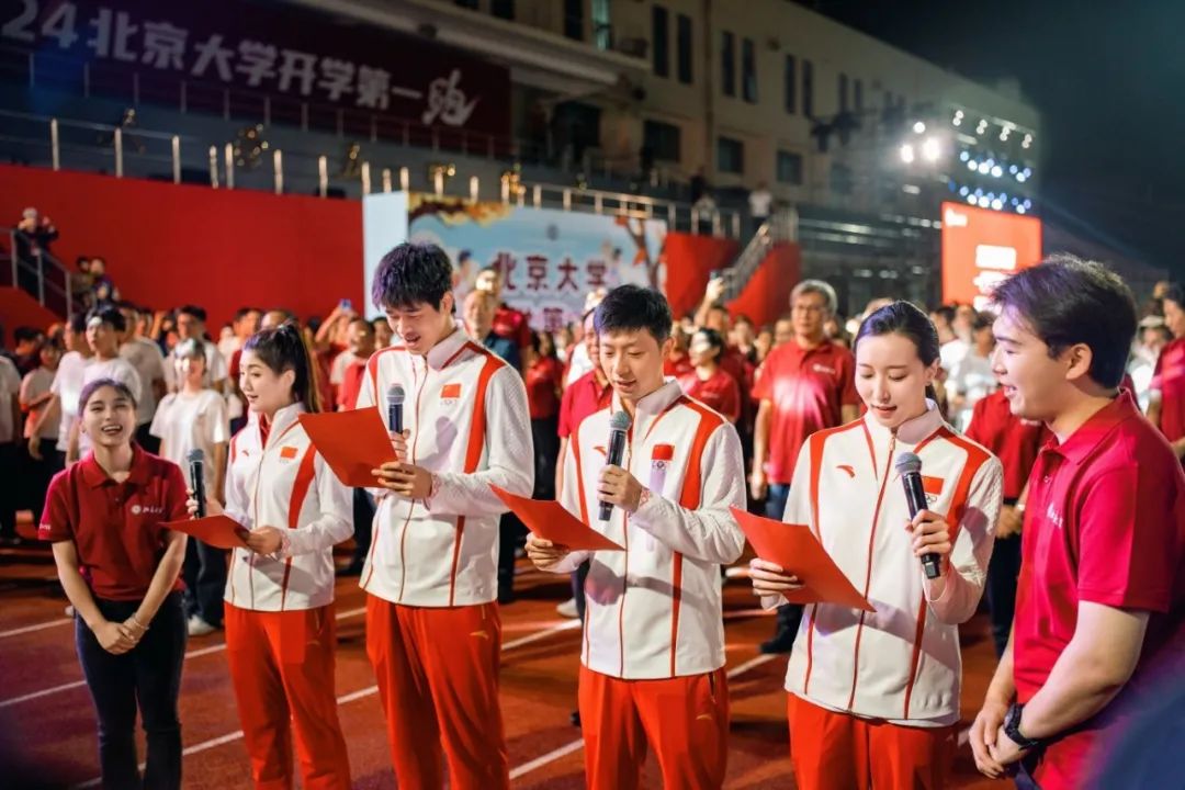 不久前結(jié)束的巴黎奧運會上,中國體育代表團(tuán)大力弘揚中華體育精神和奧林匹克精神,勇奪40枚金牌、27枚銀牌、24枚銅牌,金牌數(shù)與美國并列第一,創(chuàng)造我國境外參加奧運會歷史最好成績。馬龍、馮雨、潘展樂、陳夢等四位奧運冠軍在“第一跑”現(xiàn)場寄語北大青年,與現(xiàn)場師生熱烈互動。他們分享了自己爭分奪秒、刻苦訓(xùn)練,在奧運賽場上敢打敢拼、超越自我的經(jīng)歷,鼓勵同學(xué)們自信從容、擁抱挑戰(zhàn)、接續(xù)奮斗,一步一個腳印,為新學(xué)期、新征程蓄力賦能,開啟追夢逐夢圓夢之旅,祝愿北大青年夢想成真。