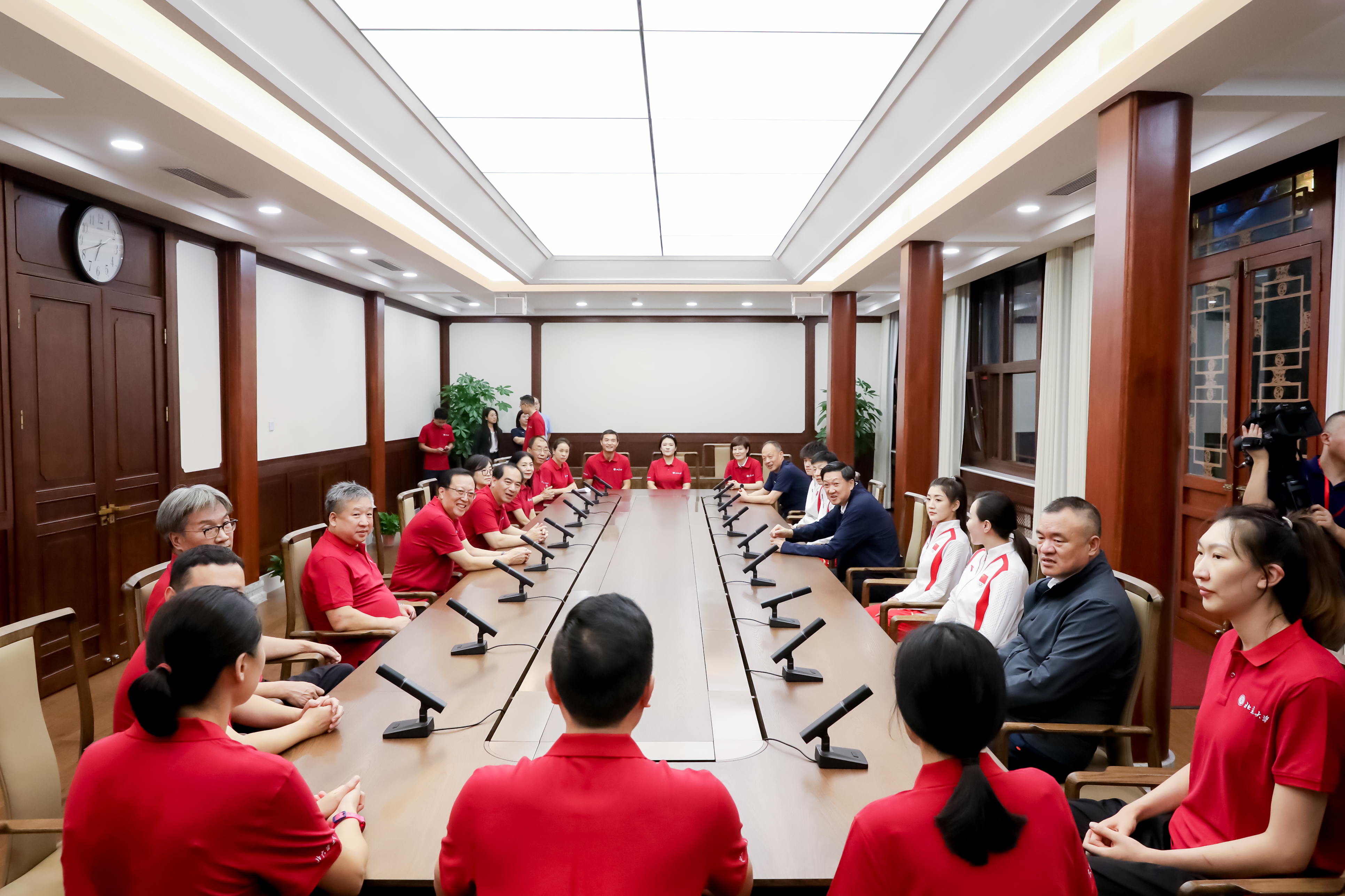 本次“開學(xué)第一跑”活動由學(xué)生工作部、共青團(tuán)北京大學(xué)委員會、體育教研部聯(lián)合主辦,是北京大學(xué)2024年新生教育的關(guān)鍵環(huán)節(jié),也是北京大學(xué)強(qiáng)化體育育人、促進(jìn)學(xué)生全面發(fā)展的重要舉措。活動開始前,郝平、龔旗煌在治貝子園會見了高志丹一行。郝平祝賀中國體育代表團(tuán)在本屆奧運會上取得優(yōu)異成績,感謝國家體育總局長期以來對北大體育育人工作的指導(dǎo)和支持,表示將引導(dǎo)北大青年積極參與體育鍛煉,推動校園體育蓬勃發(fā)展。高志丹表示,奧運健兒參與北京大學(xué)“開學(xué)第一跑”,與北大青年交流友誼,將充分發(fā)揮奧運健兒榜樣作用,讓中華體育精神在燕園發(fā)揚光大,引領(lǐng)新時代青年乘勢而上,繼續(xù)奮斗,為以中國式現(xiàn)代化全面推進(jìn)強(qiáng)國建設(shè)、民族復(fù)興偉業(yè)作出新的貢獻(xiàn)。