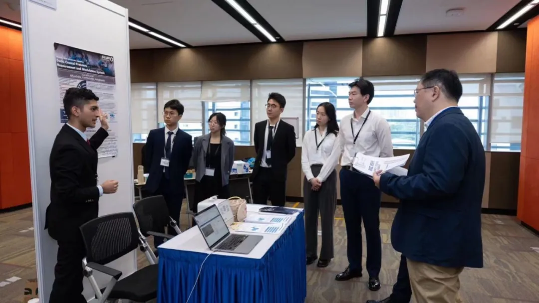 △團(tuán)隊(duì)成員在比賽現(xiàn)場向評(píng)委匯報(bào)成果