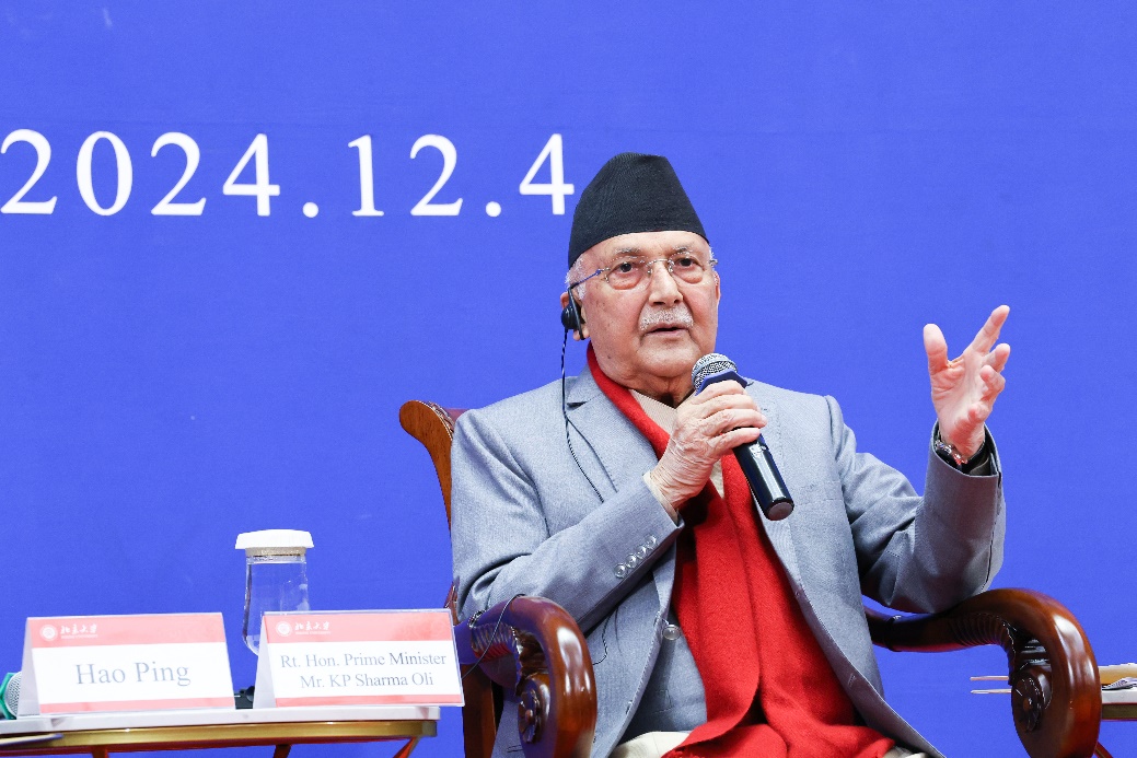 12月4日上午,在華訪問的尼泊爾總理卡德加·普拉薩德·夏爾馬·奧利(Khadga Prasad Sharma Oli)訪問北京大學(xué)并作演講。