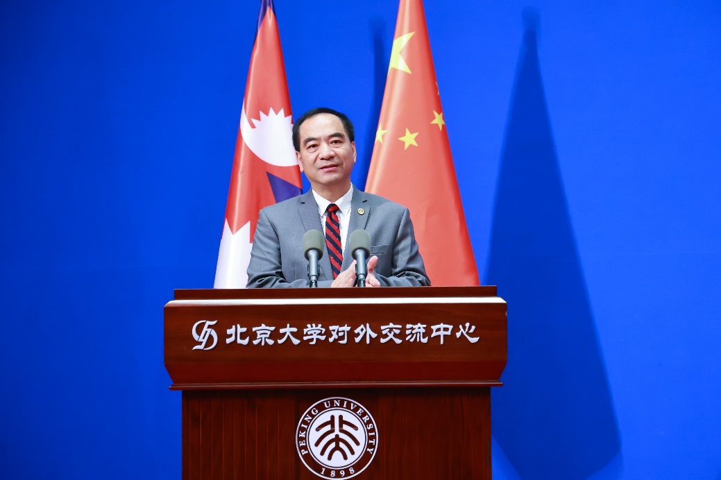奧利以“Comprehensive Democracy: A Journey towards Prosperous Nepal, Happy Nepali”為題進(jìn)行演講。他首先表達(dá)了對(duì)北京大學(xué)在中國(guó)歷史上,尤其是在教育發(fā)展、人才培養(yǎng)方面產(chǎn)生重要作用的贊賞。