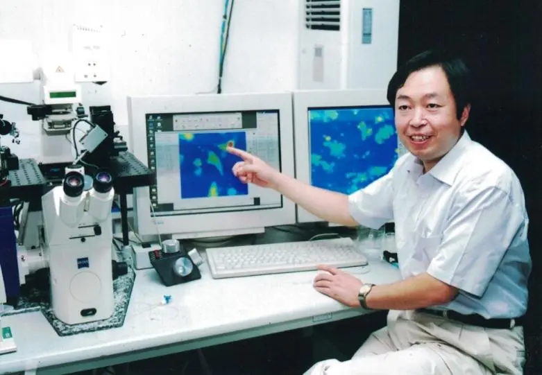 王世強(qiáng)在實(shí)驗(yàn)室向?qū)W生講解細(xì)胞的顯微成像