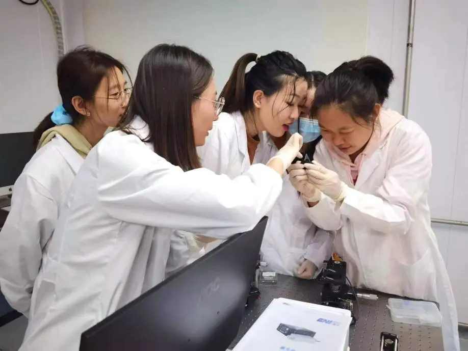 他還在學(xué)院課程方案上有所規(guī)劃,主張開設(shè)交叉背景課程。“生物熒光成像實(shí)驗(yàn)”課程就是在這樣的契機(jī)下建設(shè)的。生物學(xué)研究最繞不開的就是顯微鏡,而顯微成像系統(tǒng)的運(yùn)轉(zhuǎn)關(guān)乎光學(xué)、機(jī)械、電子軟件等交叉知識,這些卻在分門別類的傳統(tǒng)教學(xué)中鮮有系統(tǒng)性涉及。基于此,王世強(qiáng)寫下新工科背景下的熒光成像課程建設(shè)構(gòu)想,向?qū)W校遞交了新課申請,并招聘從工學(xué)院畢業(yè),了從事熒光成像研究的李美琪博士擔(dān)任專職授課教師。