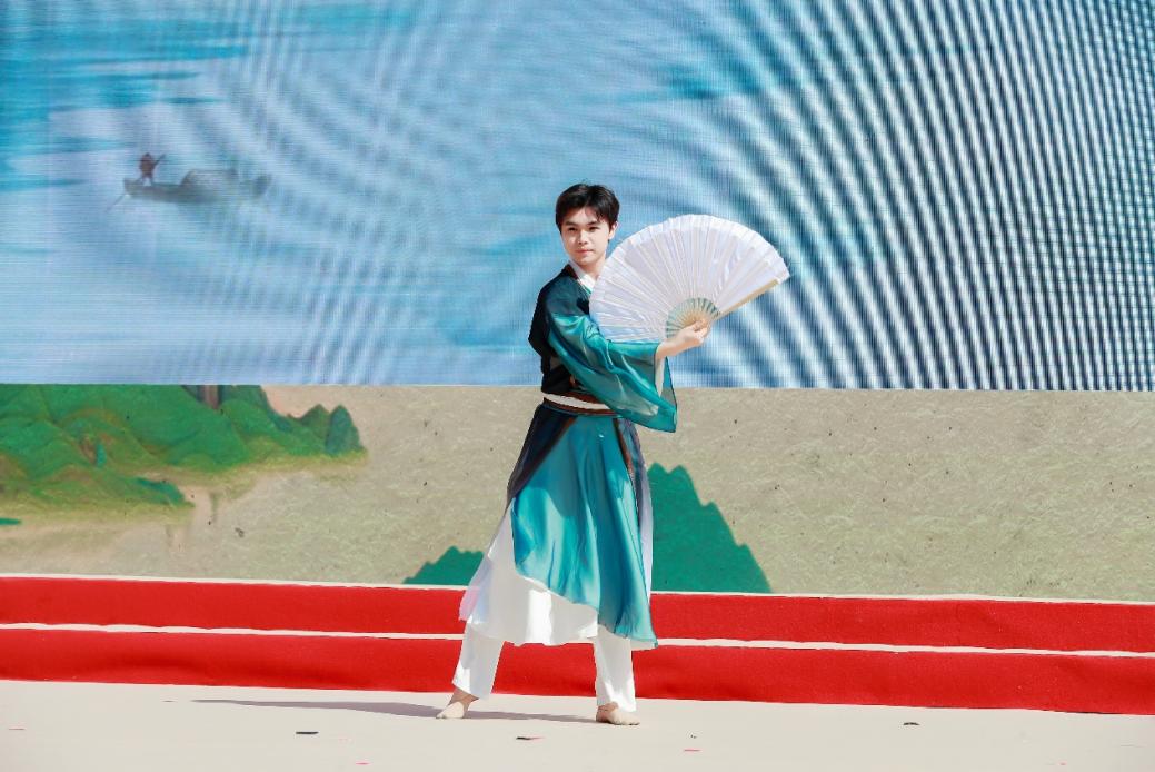 舞蹈《水韻》將水袖舞、劍舞和紙扇舞三種特色的舞蹈形式融合,傳遞中式審美的磅礴精神。