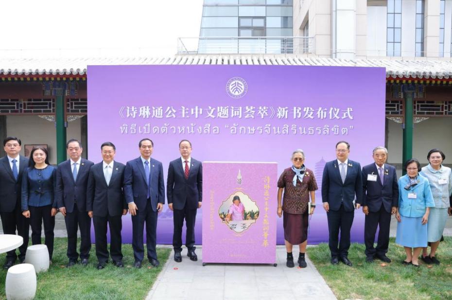 會(huì)見后,《詩(shī)琳通公主中文題詞薈萃》新書發(fā)布儀式在治貝子園舉行。胡志平在儀式致辭中表示,詩(shī)琳通公主對(duì)中泰文化交流作出巨大貢獻(xiàn),她堅(jiān)持以文會(huì)友,親自翻譯中國(guó)文學(xué)作品,支持泰國(guó)孔子學(xué)院建設(shè)。在公主的支持和感召下,泰國(guó)的中文教育蓬勃發(fā)展,《詩(shī)琳通公主中文題詞薈萃》的出版是兩國(guó)友好交流的體現(xiàn),期待未來(lái)兩國(guó)人文交流取得更多碩果,不斷譜寫新的輝煌篇章。北京大學(xué)出版社總編輯汲傳波現(xiàn)場(chǎng)介紹《詩(shī)琳通公主中文題詞薈萃》。該書匯集了詩(shī)琳通公主2015年至2024年在中泰兩地的中文題詞,公主以筆墨為橋,書寫兩國(guó)情誼,生動(dòng)展現(xiàn)了對(duì)中華文化的熱愛(ài)與兩國(guó)友誼的赤誠(chéng)。