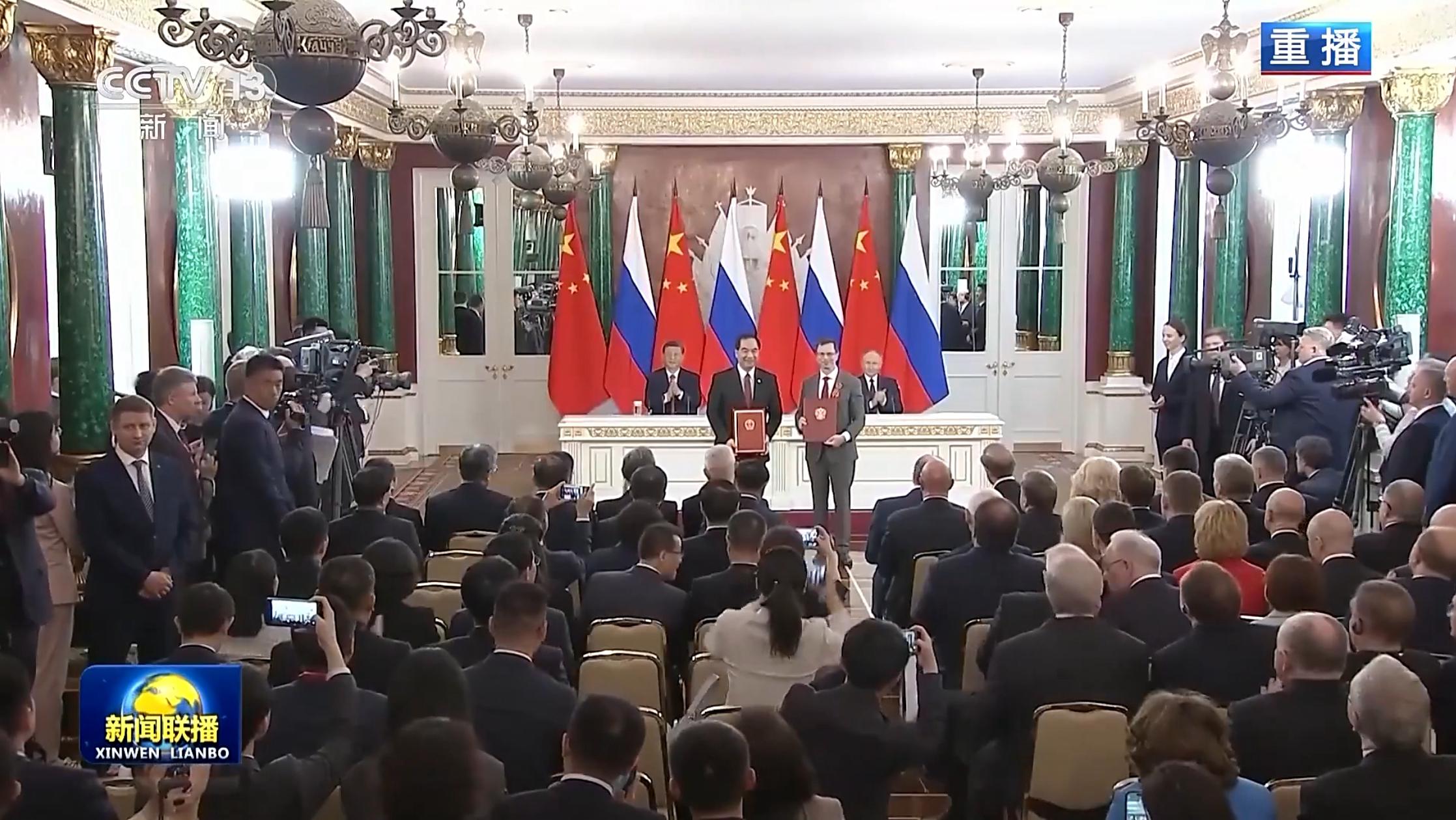 會(huì)談后,兩國(guó)元首共同簽署《中華人民共和國(guó)和俄羅斯聯(lián)邦在紀(jì)念中國(guó)人民抗日戰(zhàn)爭(zhēng)、蘇聯(lián)偉大衛(wèi)國(guó)戰(zhàn)爭(zhēng)勝利和聯(lián)合國(guó)成立80周年之際關(guān)于進(jìn)一步深化中俄新時(shí)代全面戰(zhàn)略協(xié)作伙伴關(guān)系的聯(lián)合聲明》,共同見證中俄雙方交換20多份雙邊合作文本,涵蓋全球戰(zhàn)略穩(wěn)定、維護(hù)國(guó)際法權(quán)威、生物安全、投資保護(hù)、數(shù)字經(jīng)濟(jì)、檢疫、電影合作等領(lǐng)域。