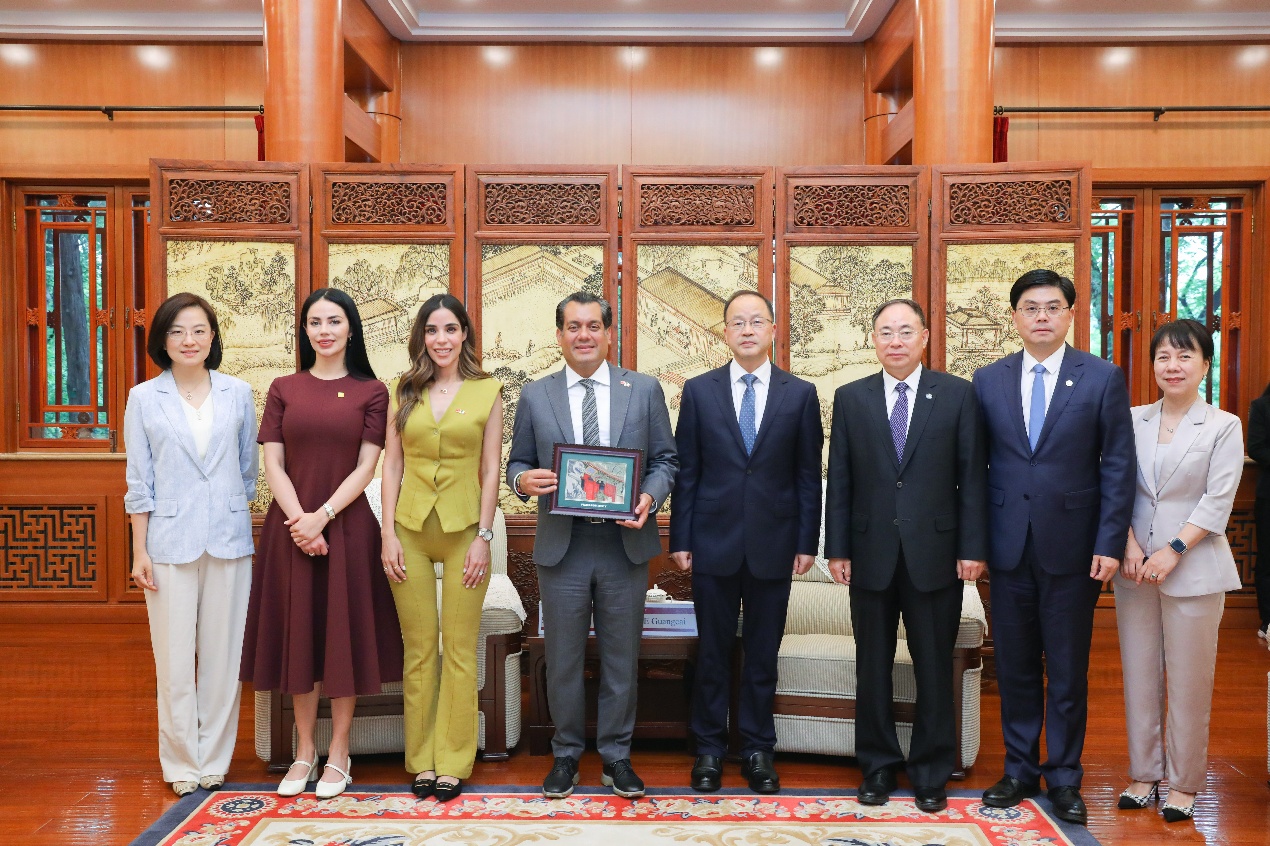 2025年5月20日,墨西哥眾議長古鐵雷斯(Sergio Gutiérrez Luna)率代表團(tuán)訪問北京大學(xué),全國人大環(huán)境與資源保護(hù)委員會(huì)委員劉振芳陪同來訪。北京大學(xué)黨委書記、校務(wù)委員會(huì)主任何光彩在臨湖軒會(huì)見代表團(tuán)一行,黨委常委、副校長方方陪同會(huì)見。