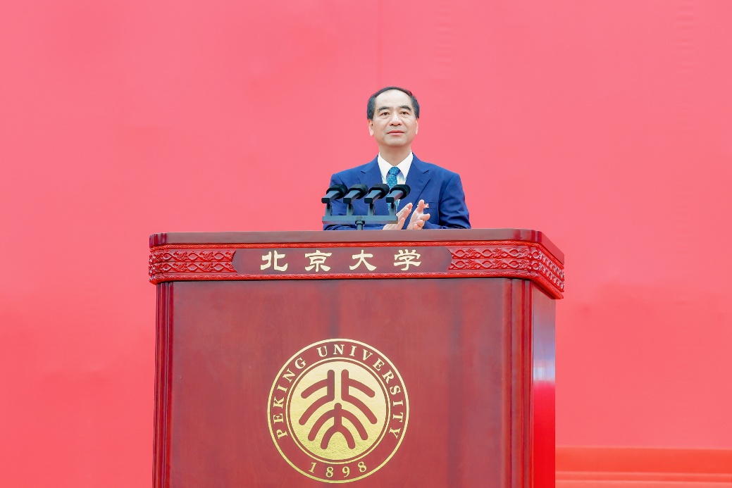 龔旗煌代表學校對各位新同學的到來表示熱烈歡迎。他指出,兩天前,紀念中國人民抗日戰(zhàn)爭暨世界反法西斯戰(zhàn)爭勝利80周年大會在北京隆重舉行,北大師生倍感振奮與自豪。從“救亡圖存”的艱辛探索,到“團結(jié)起來,振興中華”的時代強音,再到“請黨放心,強國有我”的使命擔當,走過127個春秋的北大始終與祖國和人民同奮斗、共前進,引領(lǐng)一代代青年學子在歷史潮流中堅定人生航向。