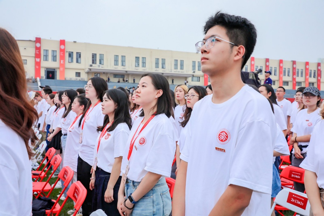 新生全體起立,集體佩戴校徽。從這一刻起,同學們便與這所百年學府血脈相融。